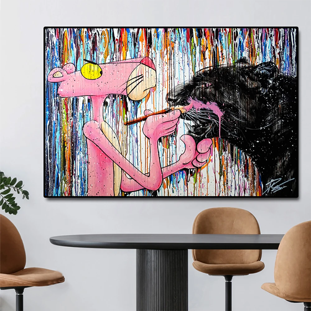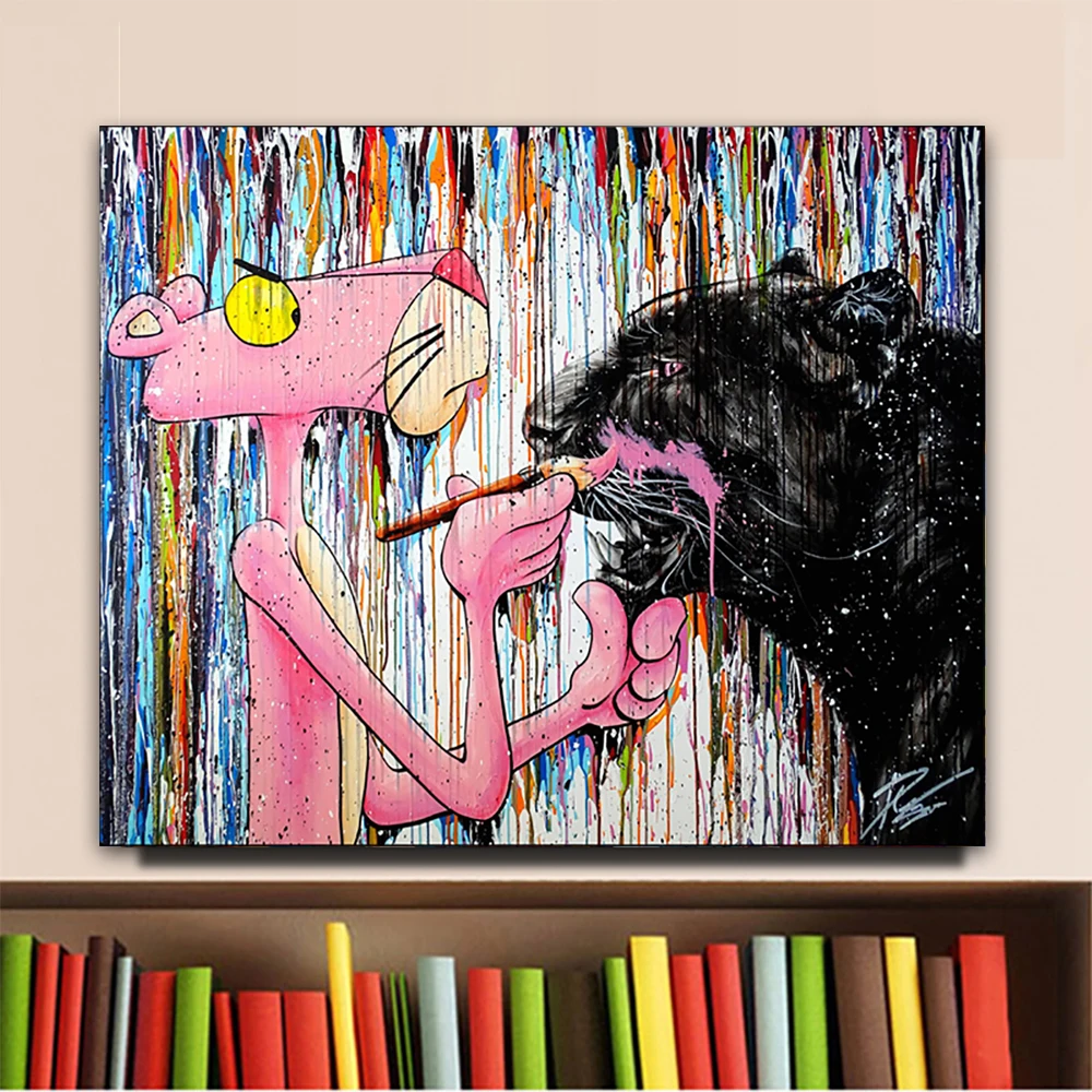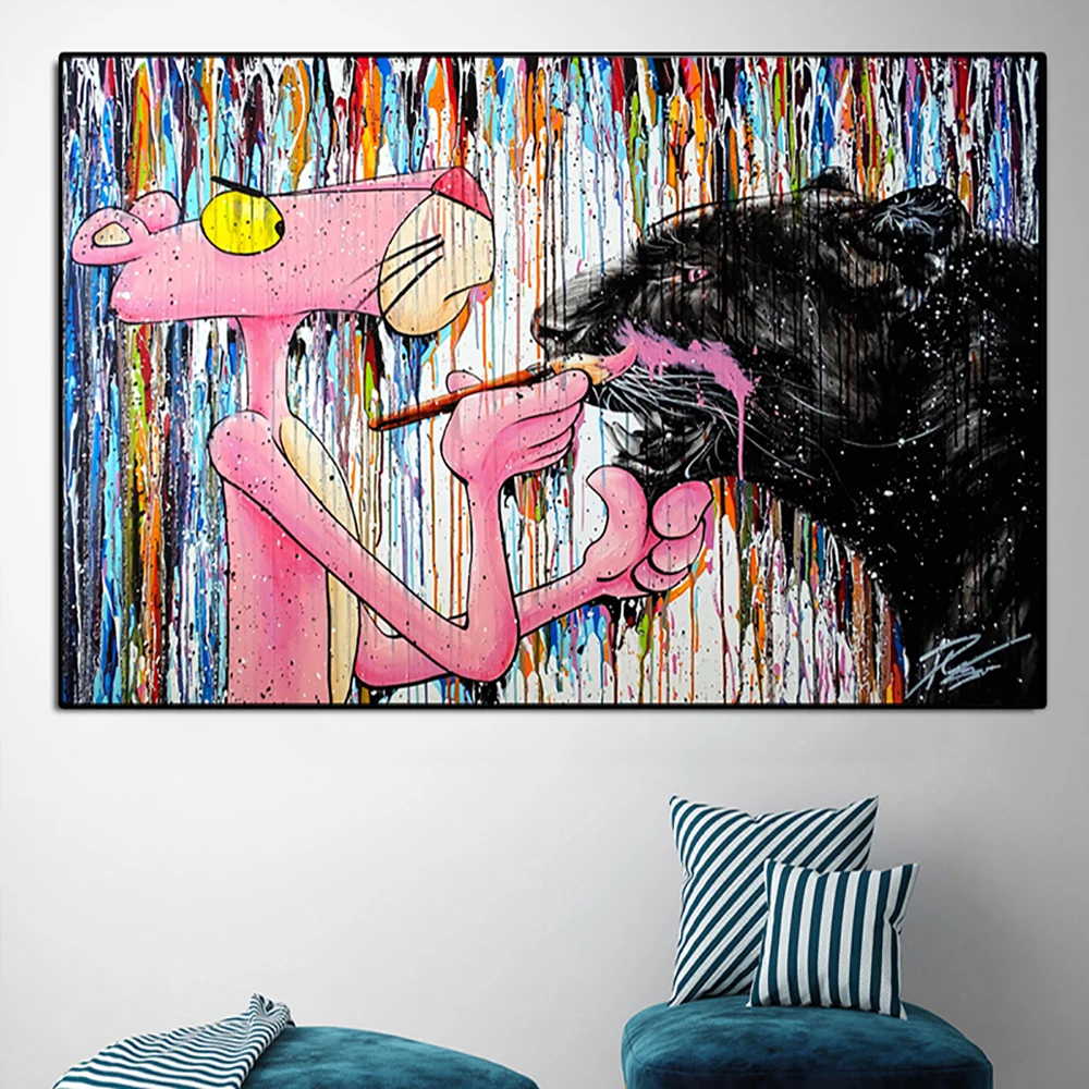 Граффити искусство Розовая пантера настенная Картина на холсте скан...