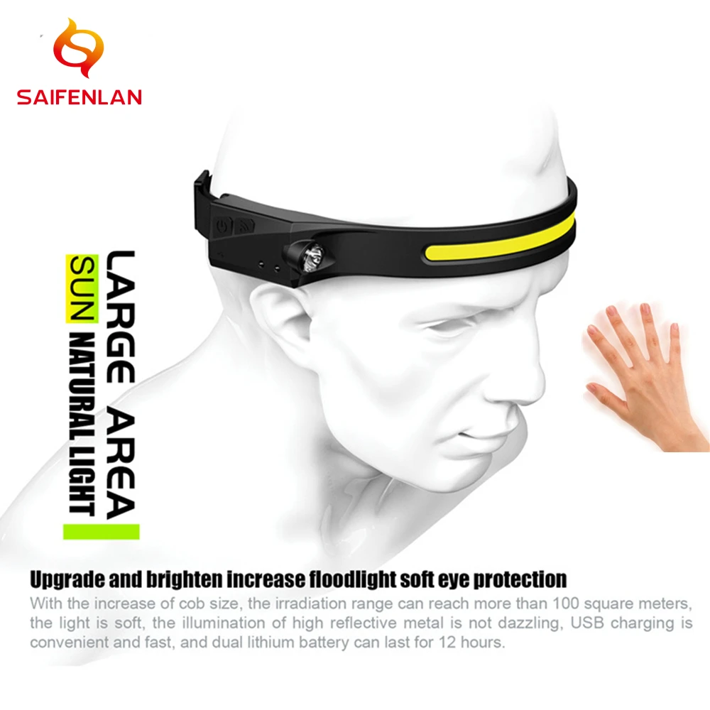 Налобный фонарь с гибким датчиком COB, светодиодный налобный фонарь...