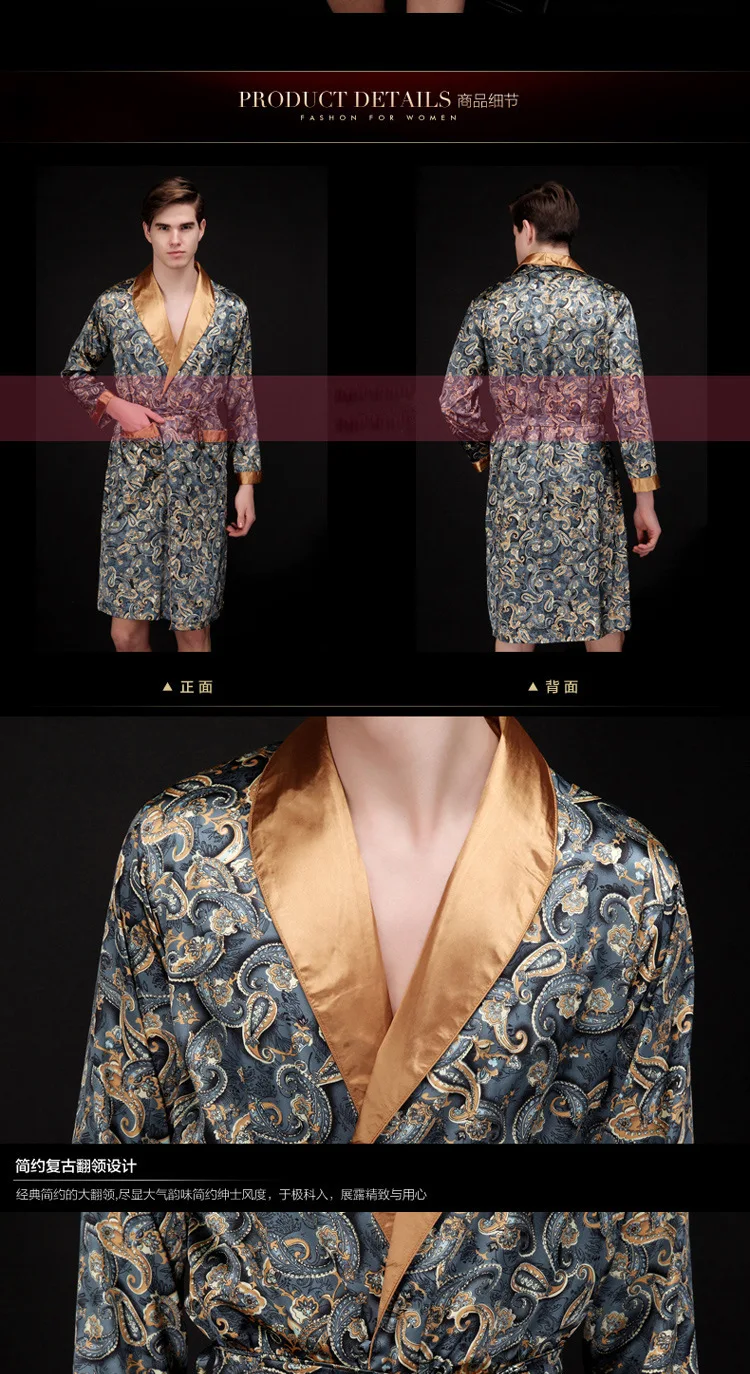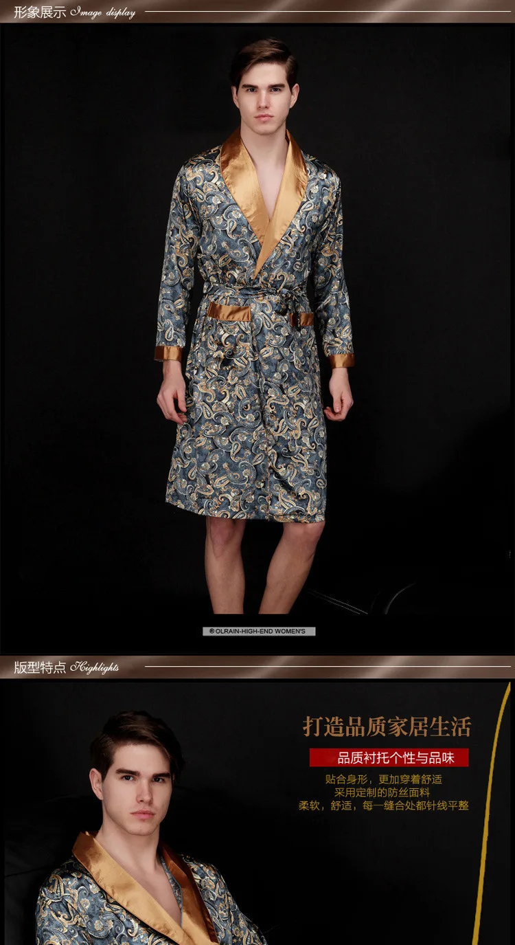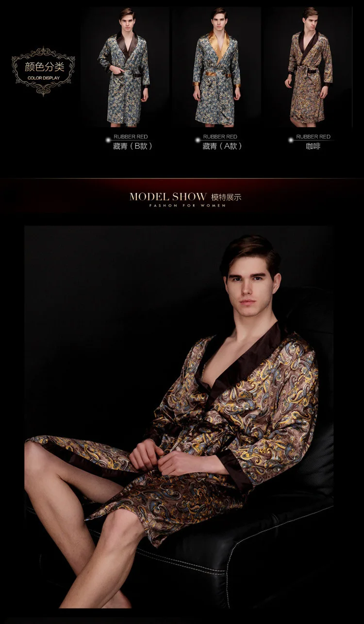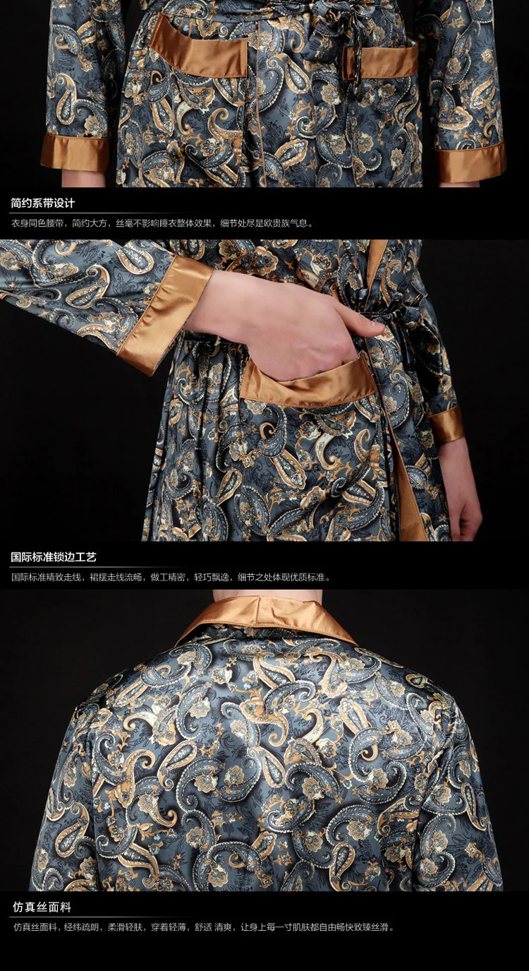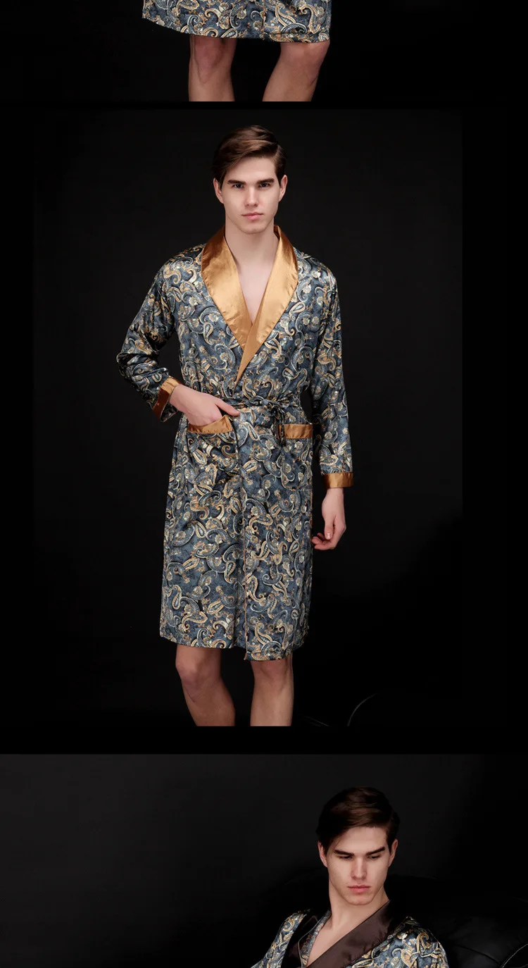 Шелковые халаты с принтом пейсли для мужчин, атласная одежда для сн...