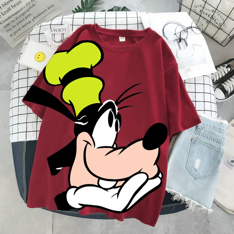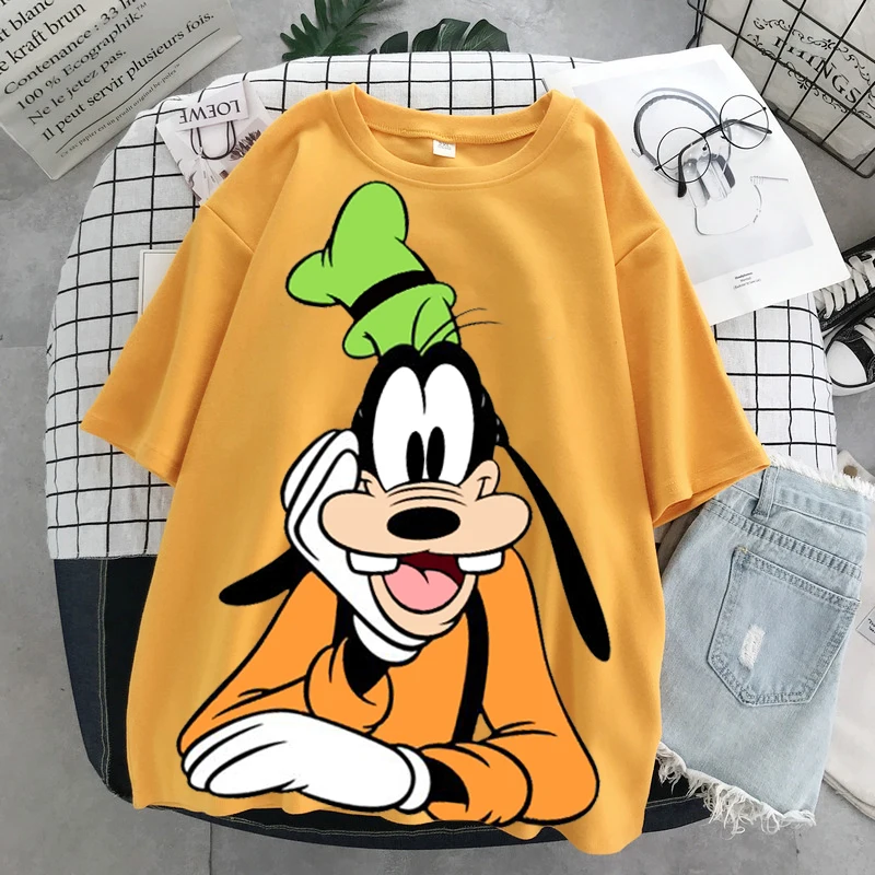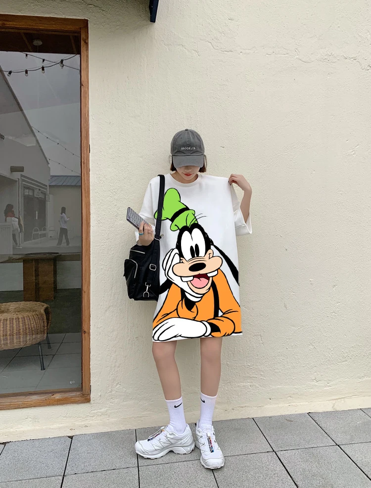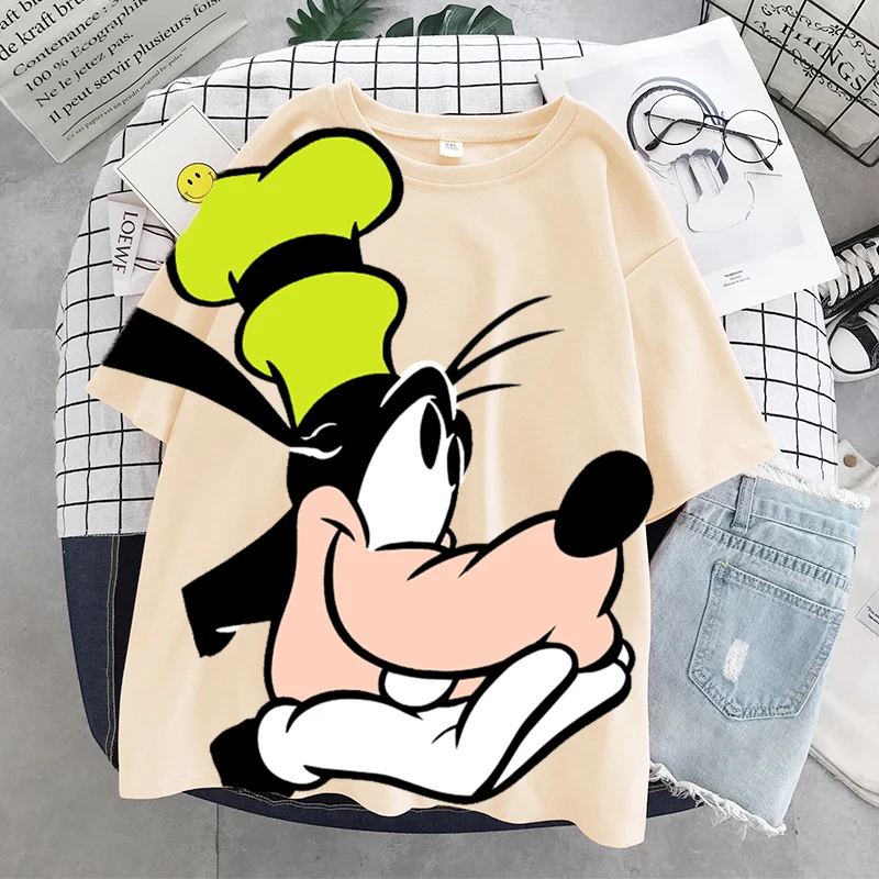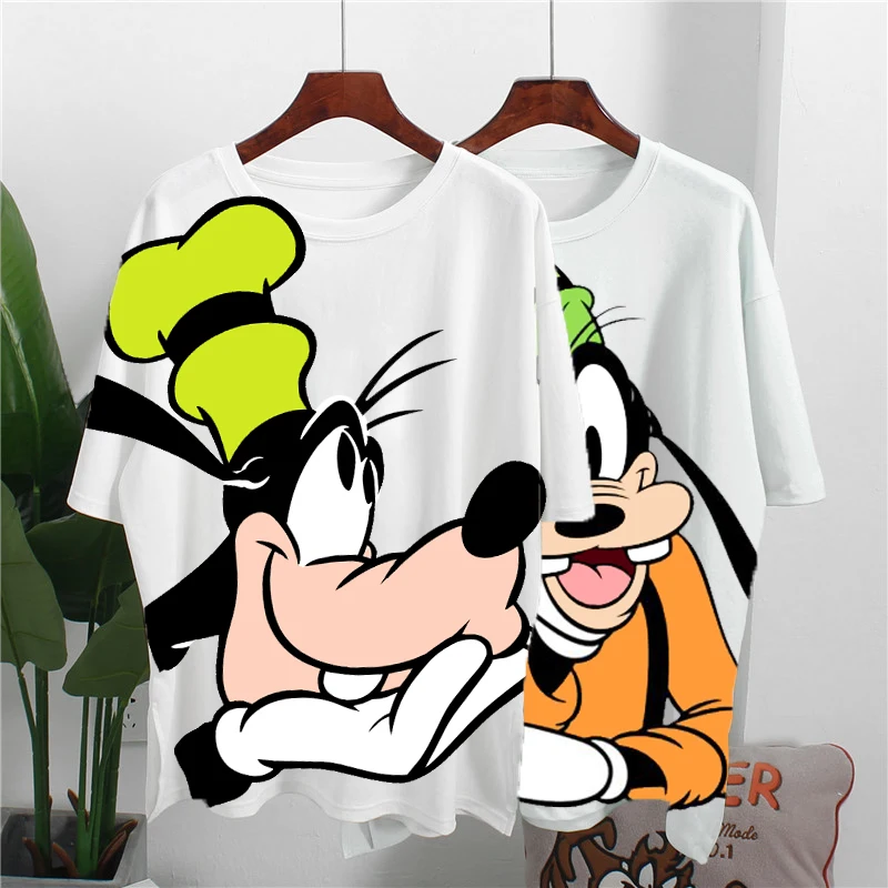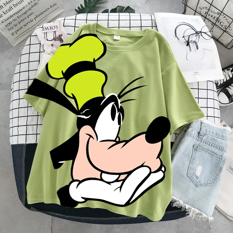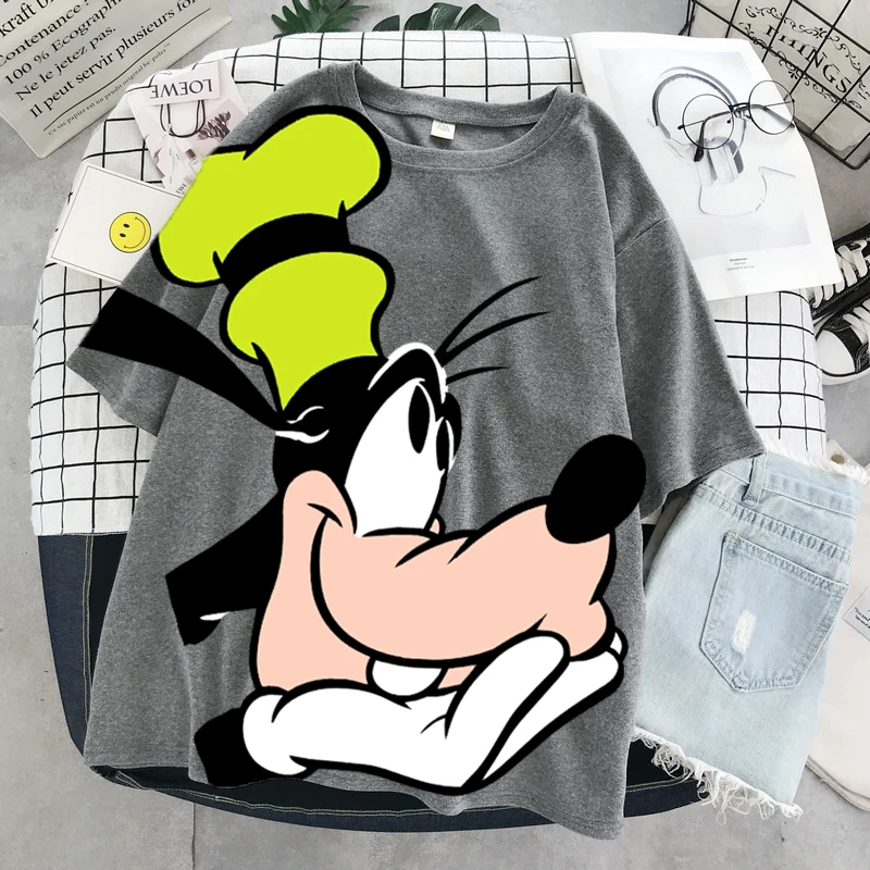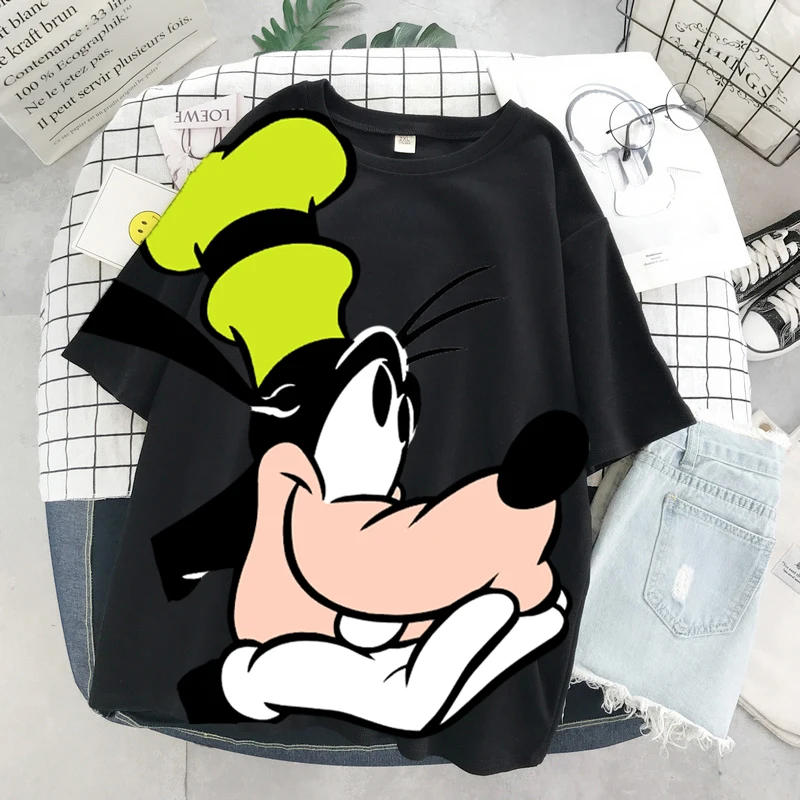 Футболка женская оверсайз с мультяшным Гуфи Disney, повседневный топ в стиле улззанг, уличная одежда в стиле хип-хоп, с коротким рукавом, в стиле Харадзюку, на лето