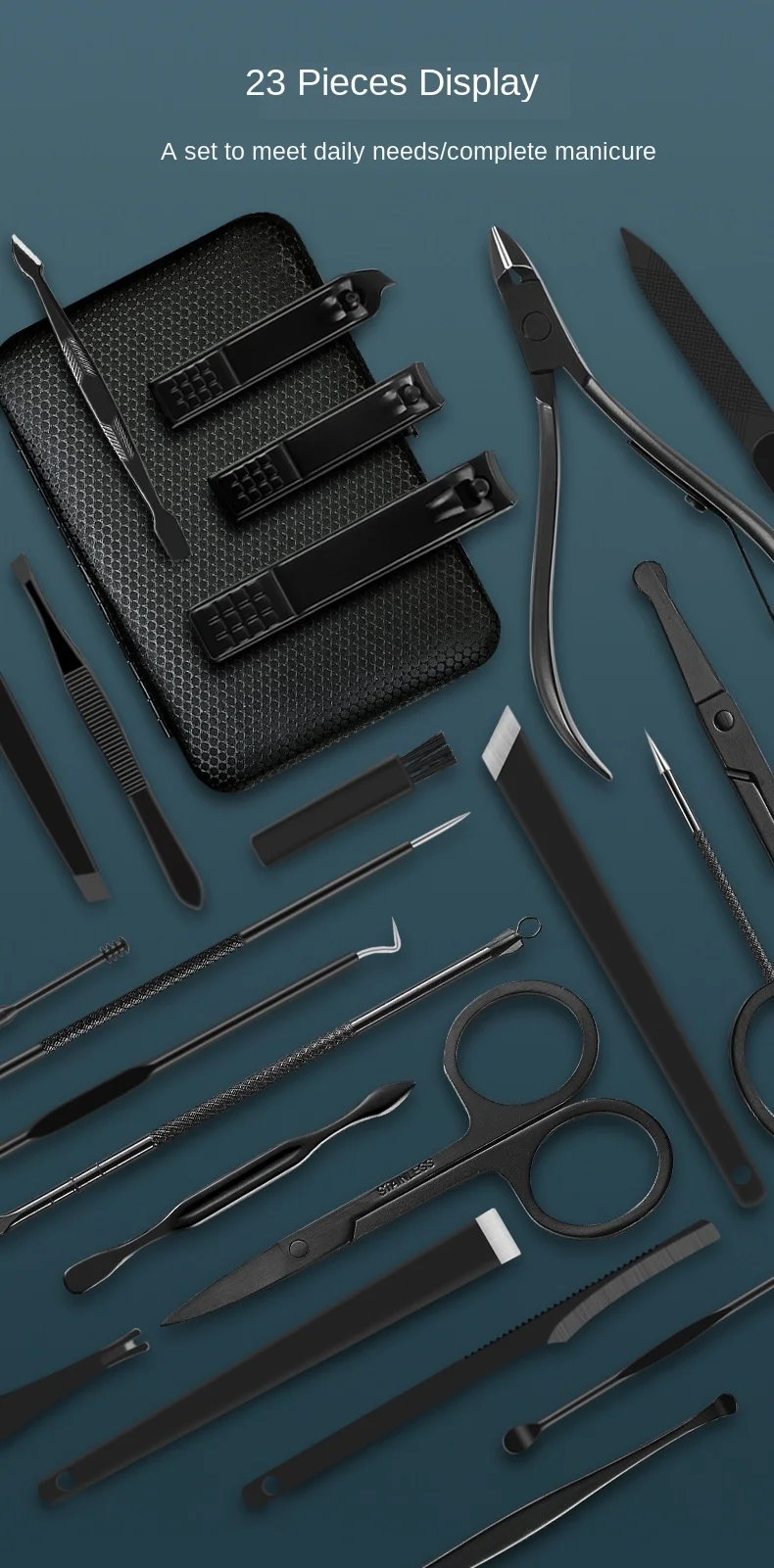 23 шт. маникюрный набор из нержавеющей стали набор для ногтей Ferramentas ножницы для кутикулы машинка для стрижки ногтей Педикюр Уход за ногами Инструменты herramientas