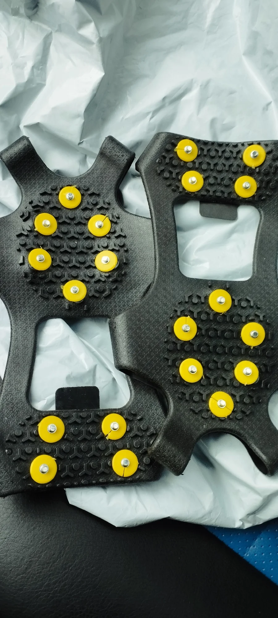 Слетают при интенсивной ходьбе и выворачиваются тудым-сюлы . Один раз чуть не навернулся, но немного оучше чем без этой приспосоьы по гололеду ходить. Но только по ровной поверхности типа ледяного катка