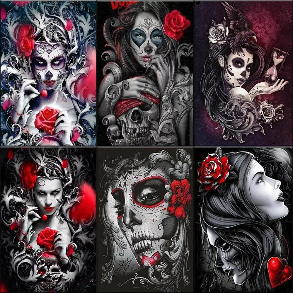 DIY картина по номерам для взрослых череп фигурки фотографии Раскраска по номерам на холсте прикладного искусства Хобби Подарки