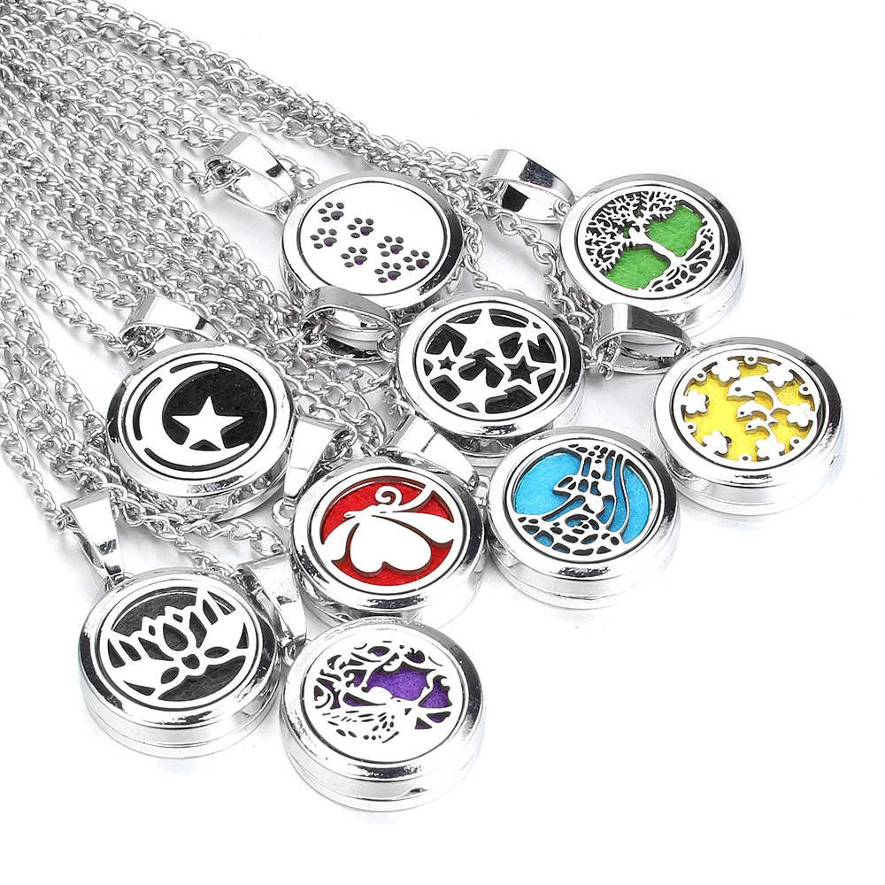 Древо жизни коробка Арома ожерелье из цинкового сплава, цинковый сплав ароматерапия из нержавеющей стали эфирных масел, аэрозольный распылитель духов медальон кулон ювелирные изделия