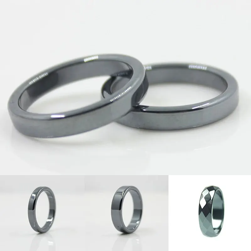 Кольца из гематита для мужчин и женщин, не магнитные вечерние ювелирные украшения 6 мм с гладкой гранью, черное кольцо, подарок подруге