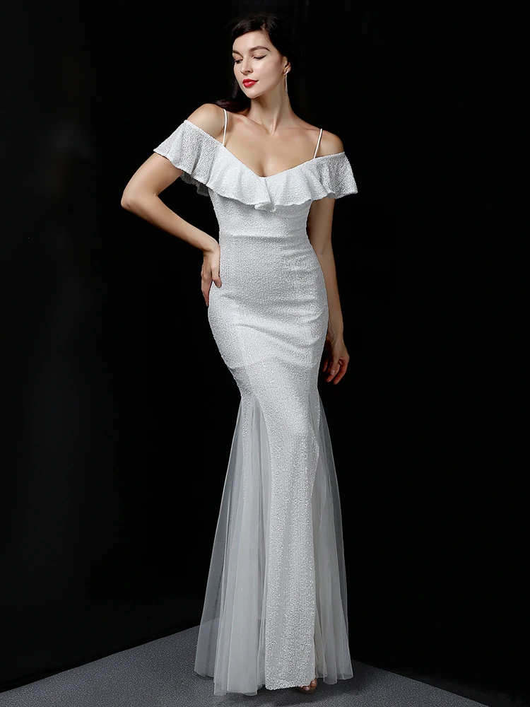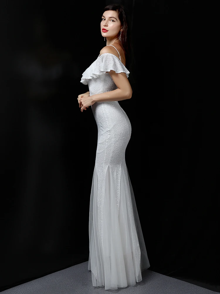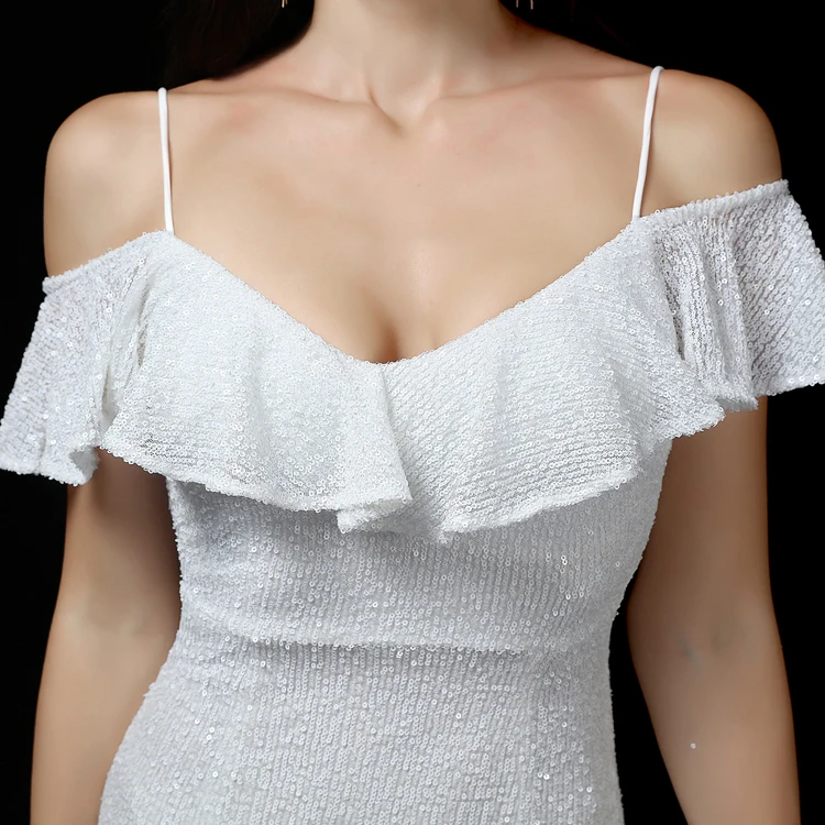 YIDINGZS белое платье на бретельках, вечернее платье с блестками и открытыми плечами, женское длинное вечернее платье
