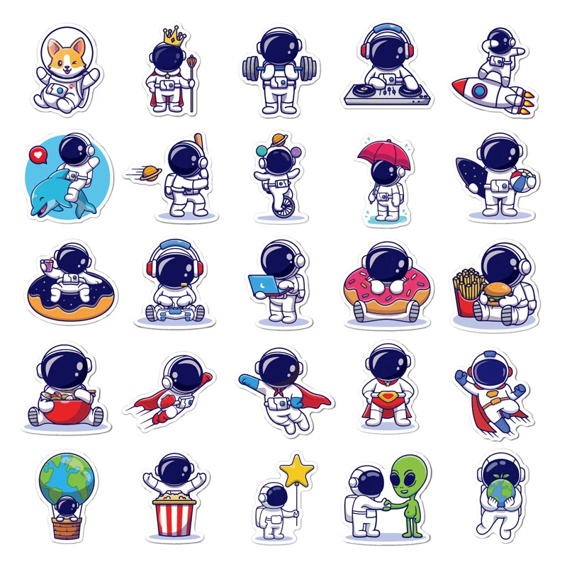 1050 шт.компл., милый мультяшный кавайный астронавт, Вселенная, внешняя фотография, для ноутбука, велосипеда, игрушки, багажа, детский шлем