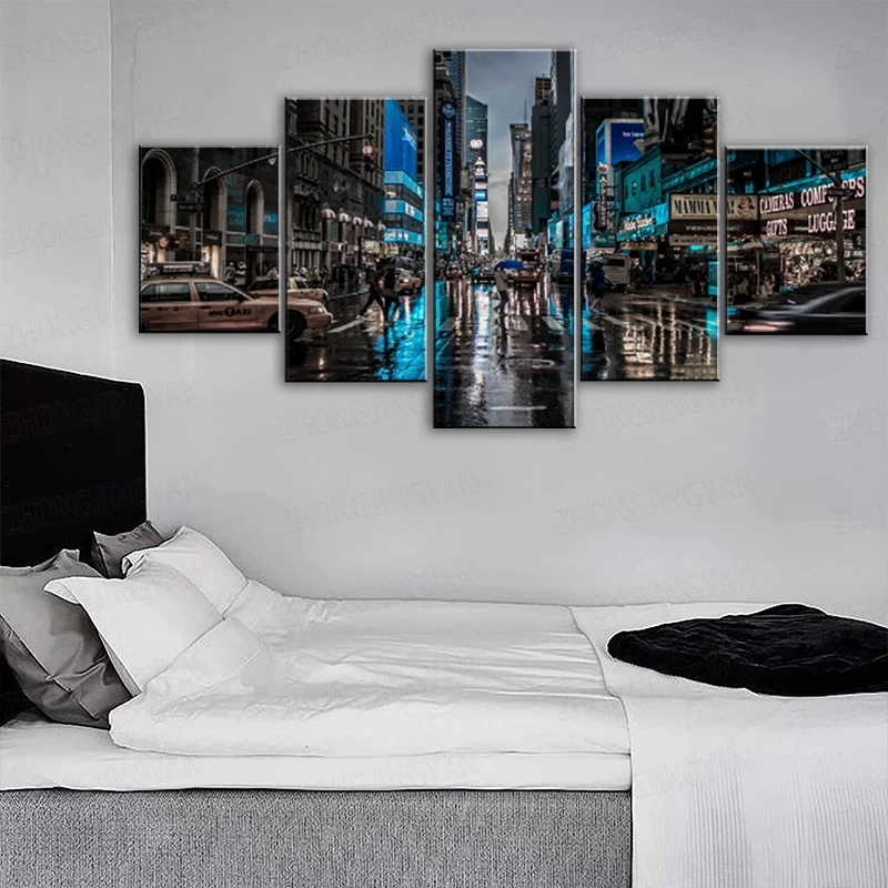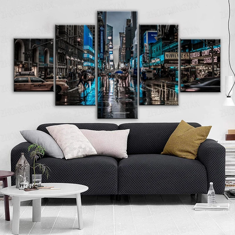 Декор для гостиной Настенная картина в рамке Современные HD-принты городская улица автомобиль картины для ночной сцены плакат модульные картины на холсте