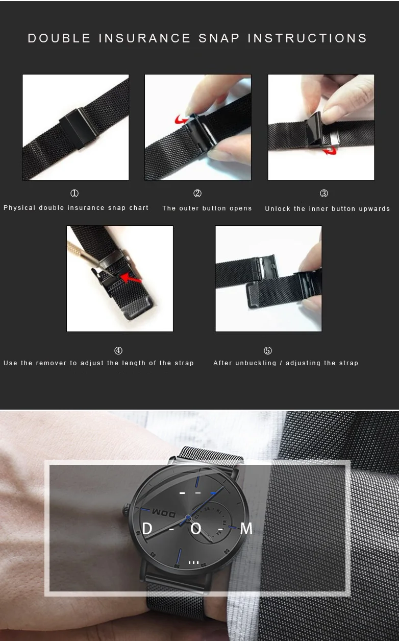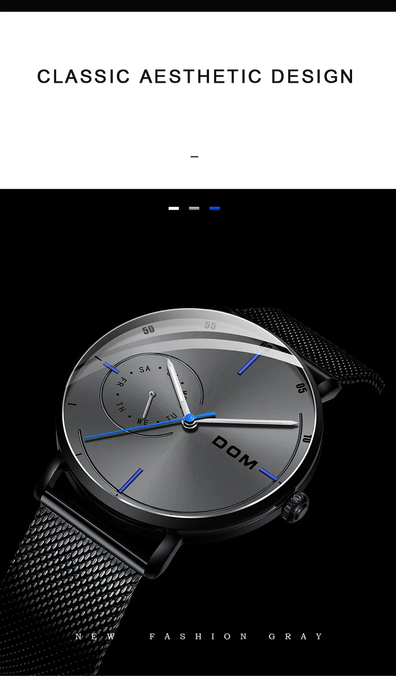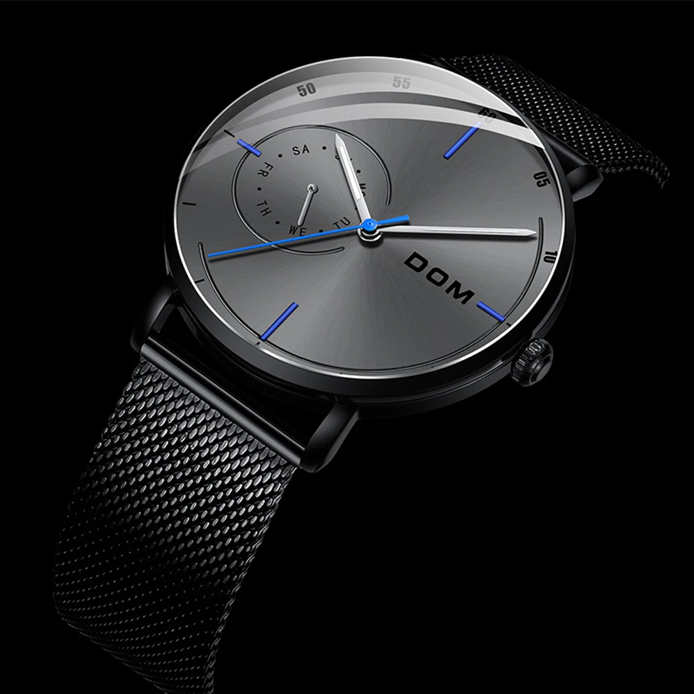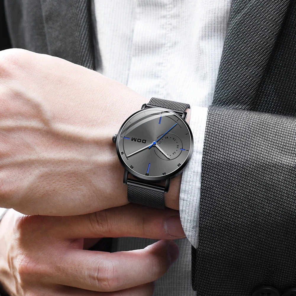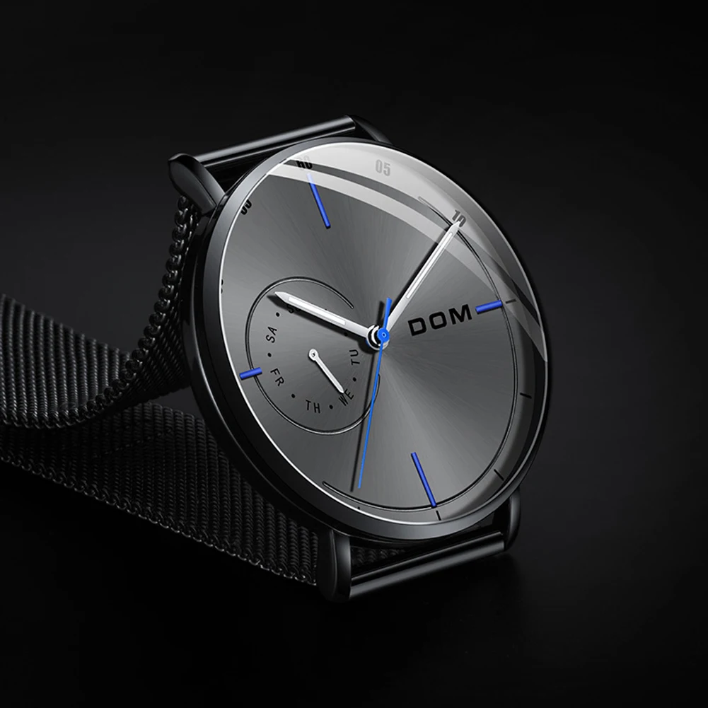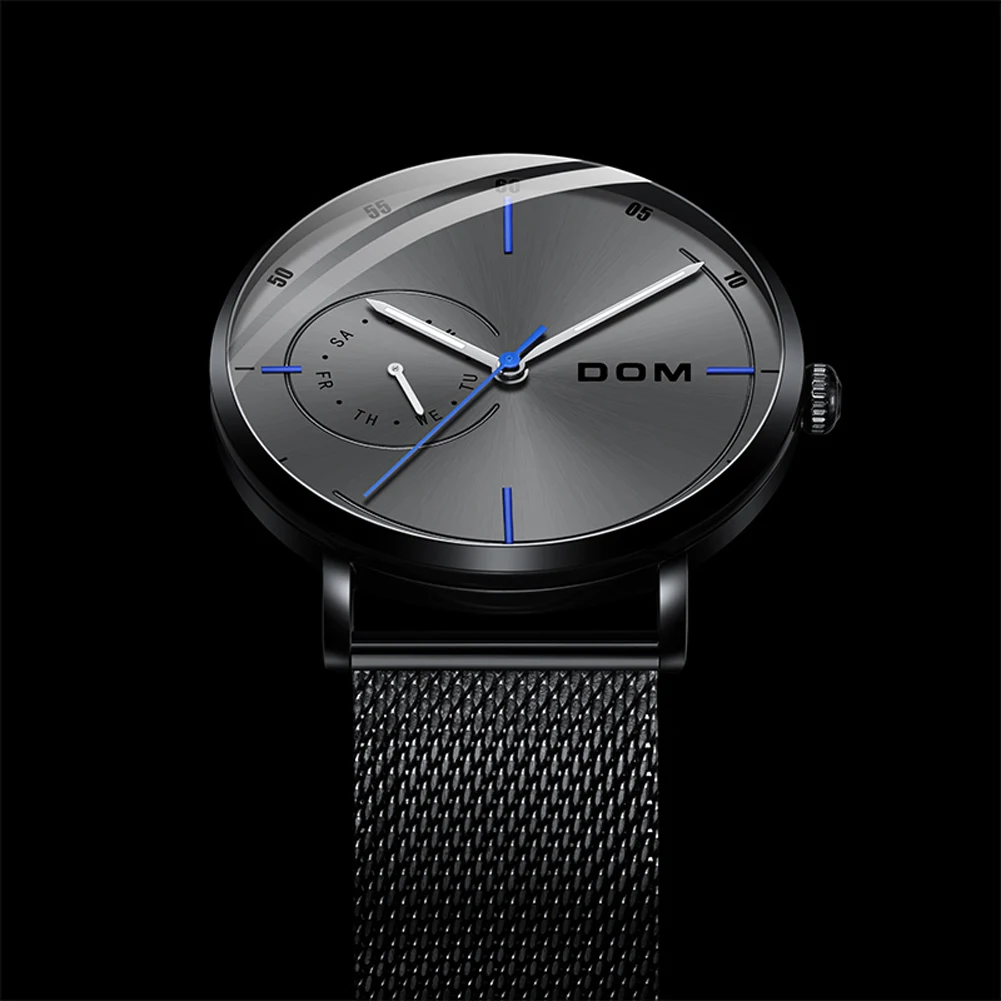 DOM Для мужчин, мужские часы, ультра тонкие Кварцевые аналоговые наручные часы Нержавеющаясталь сетчатый ремешок Для мужчин спортивные наручные часы M-1273