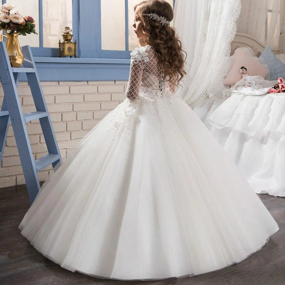 Роскошные платья для девочек с жемчужинами и цветами, бальное плать...