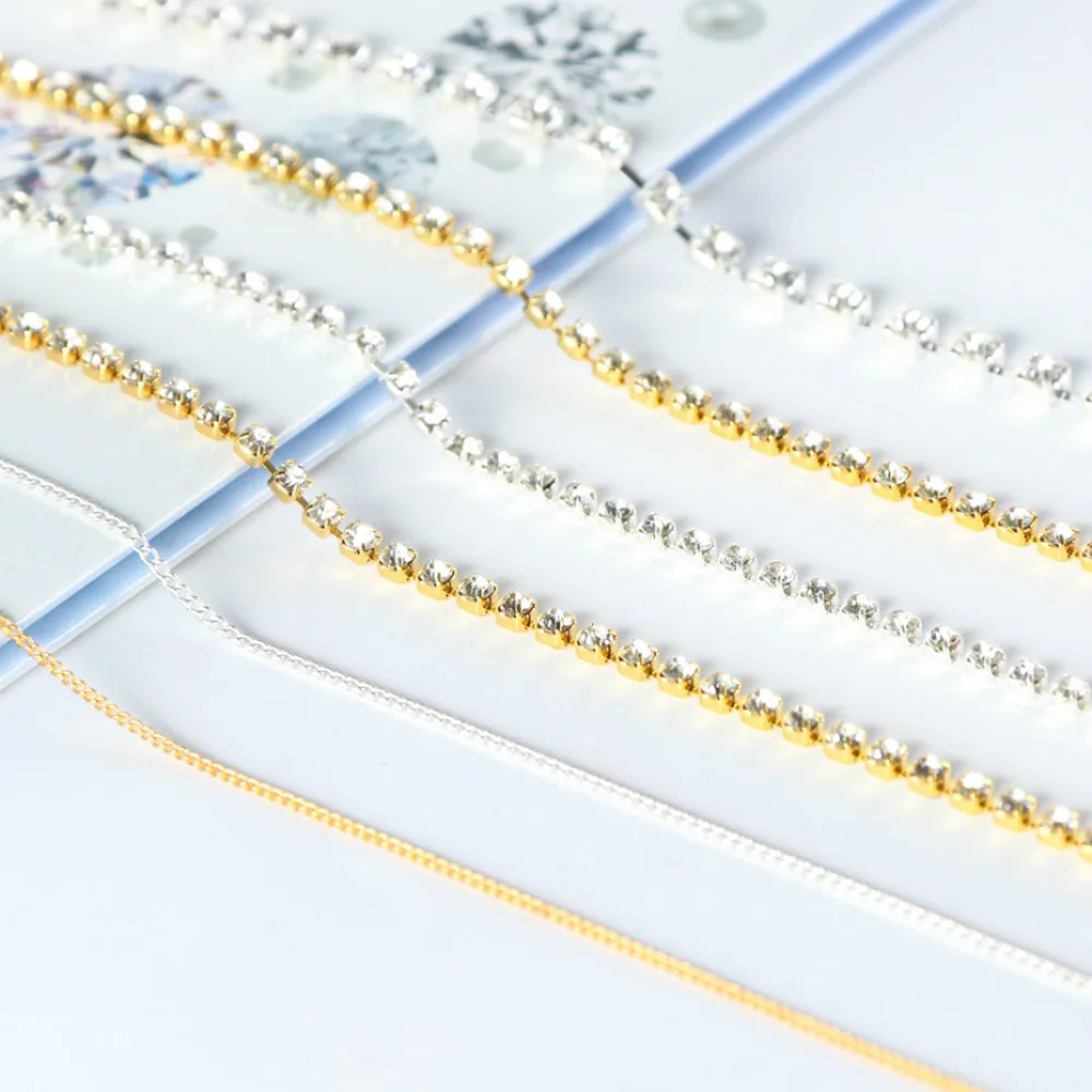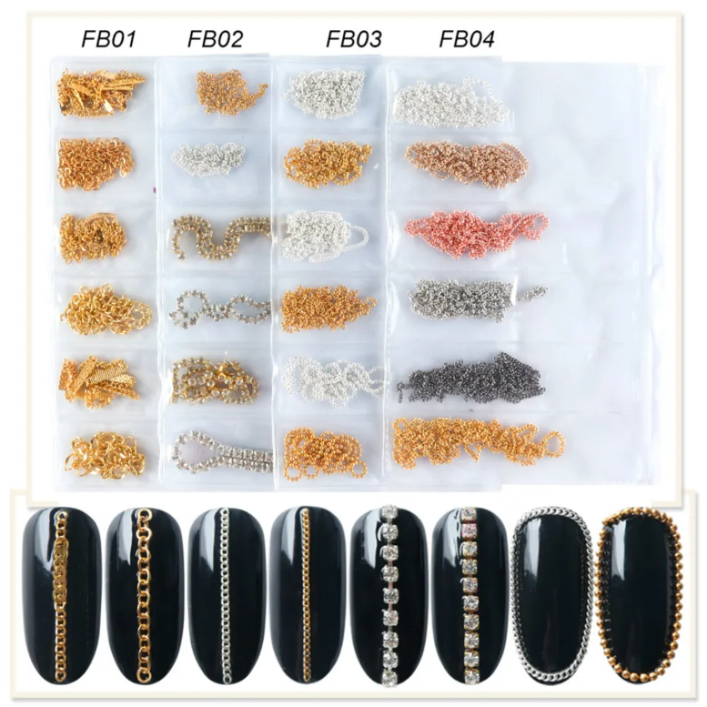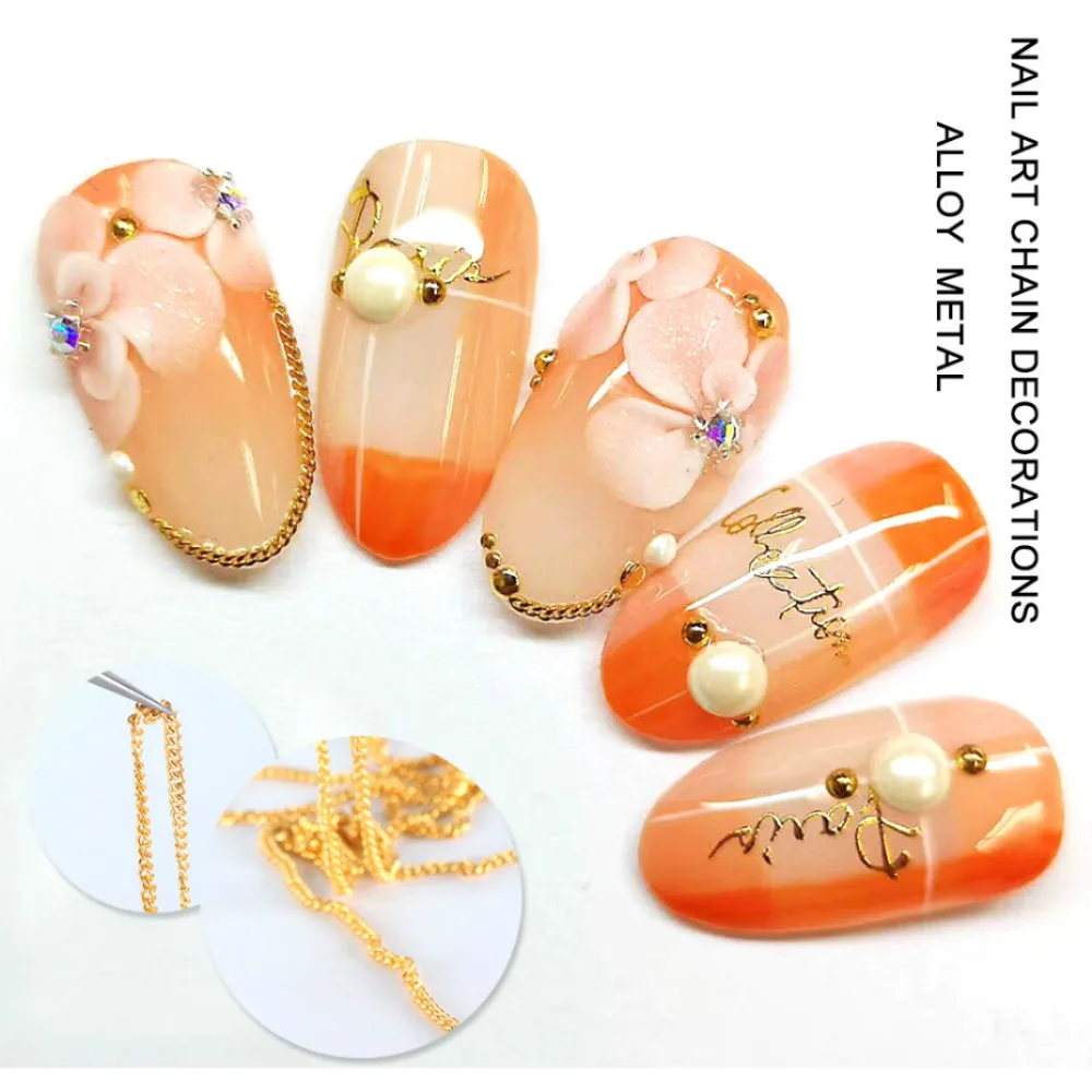 3d металлическая цепочка для украшения ногтей сплав золото серебро дизайн для ногтей алмазные бусины ювелирные изделия слайдеры аксессуары