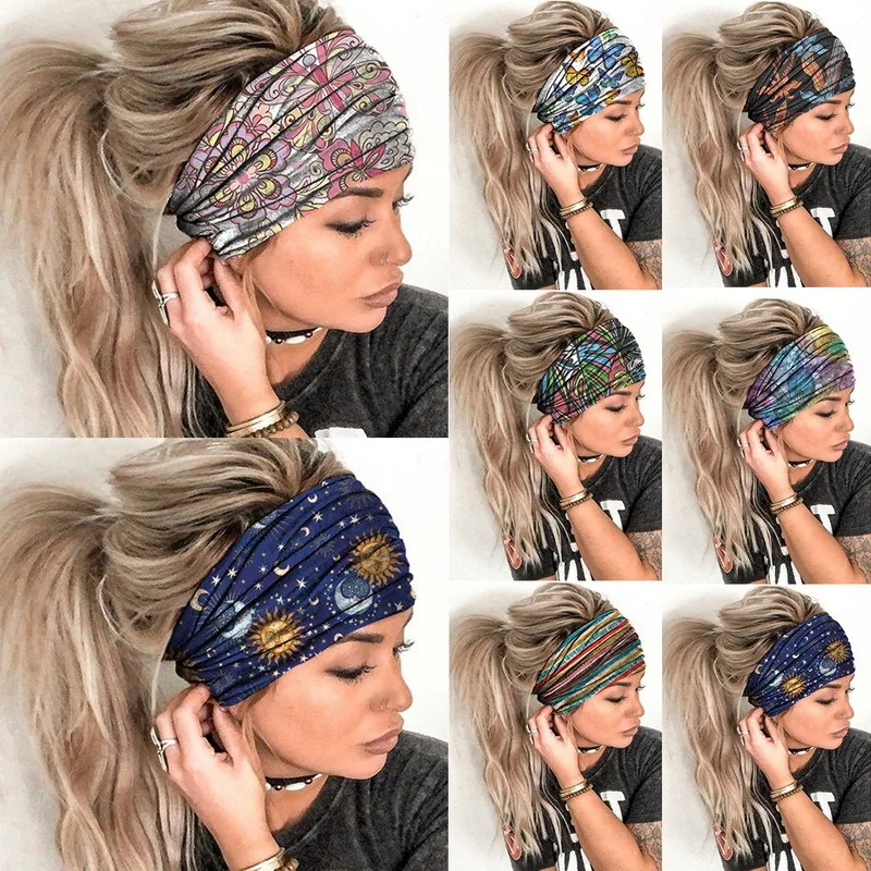 Повязка на голову женская, широкая, эластичная, в богемном стиле, 2020