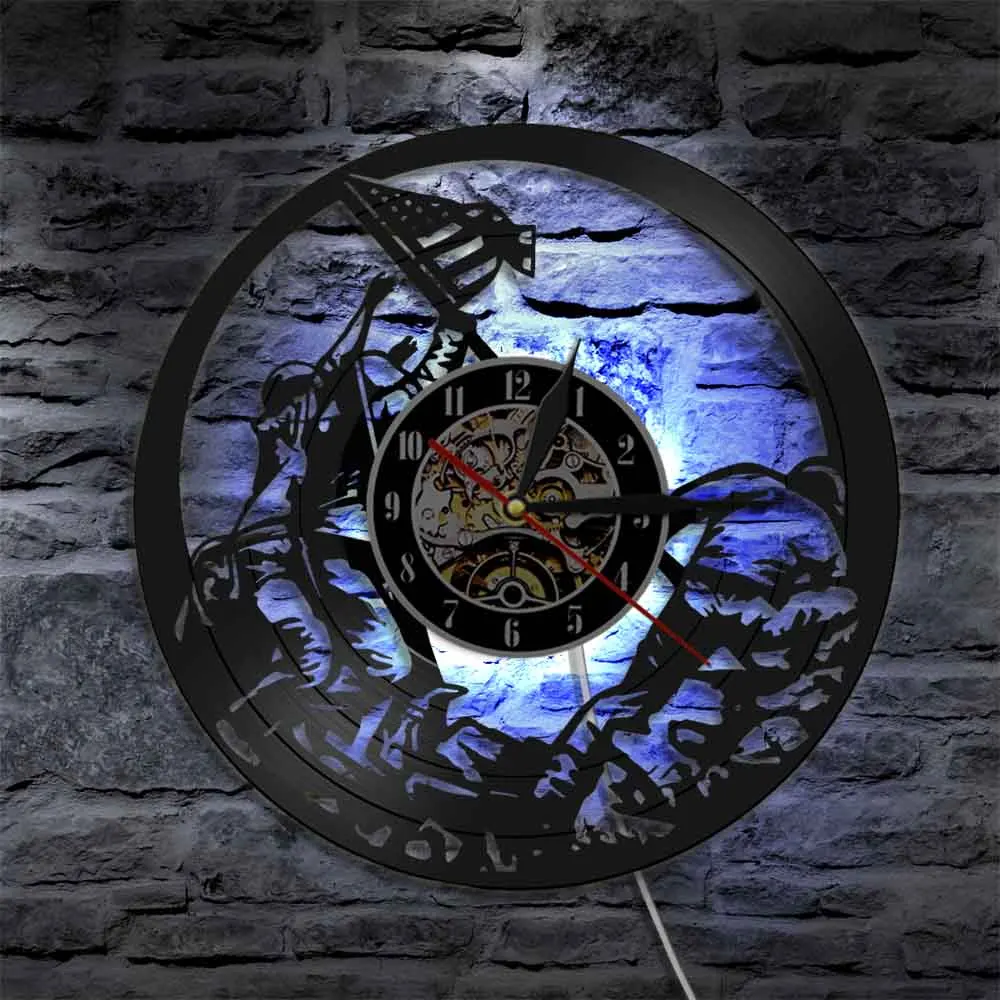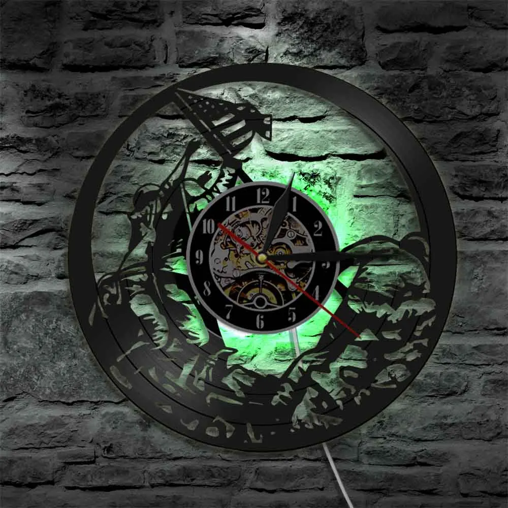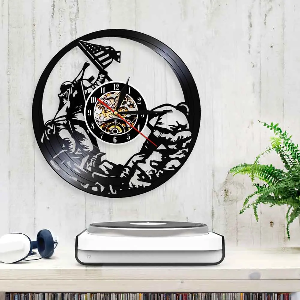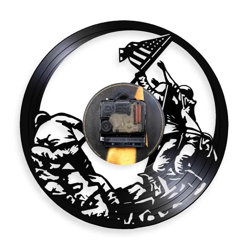 Настенные часы с поднятием флага военно-морских сил Iwo Jima WWll, настенные часы Iwo Jima, американские ветераны, часы с виниловой пластиной, настенные часы с ретро-альбомом
