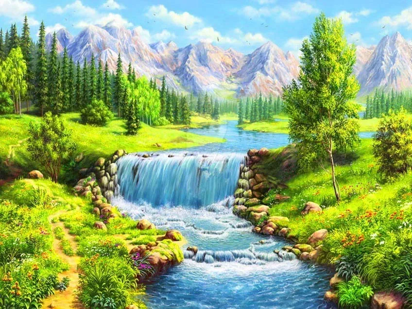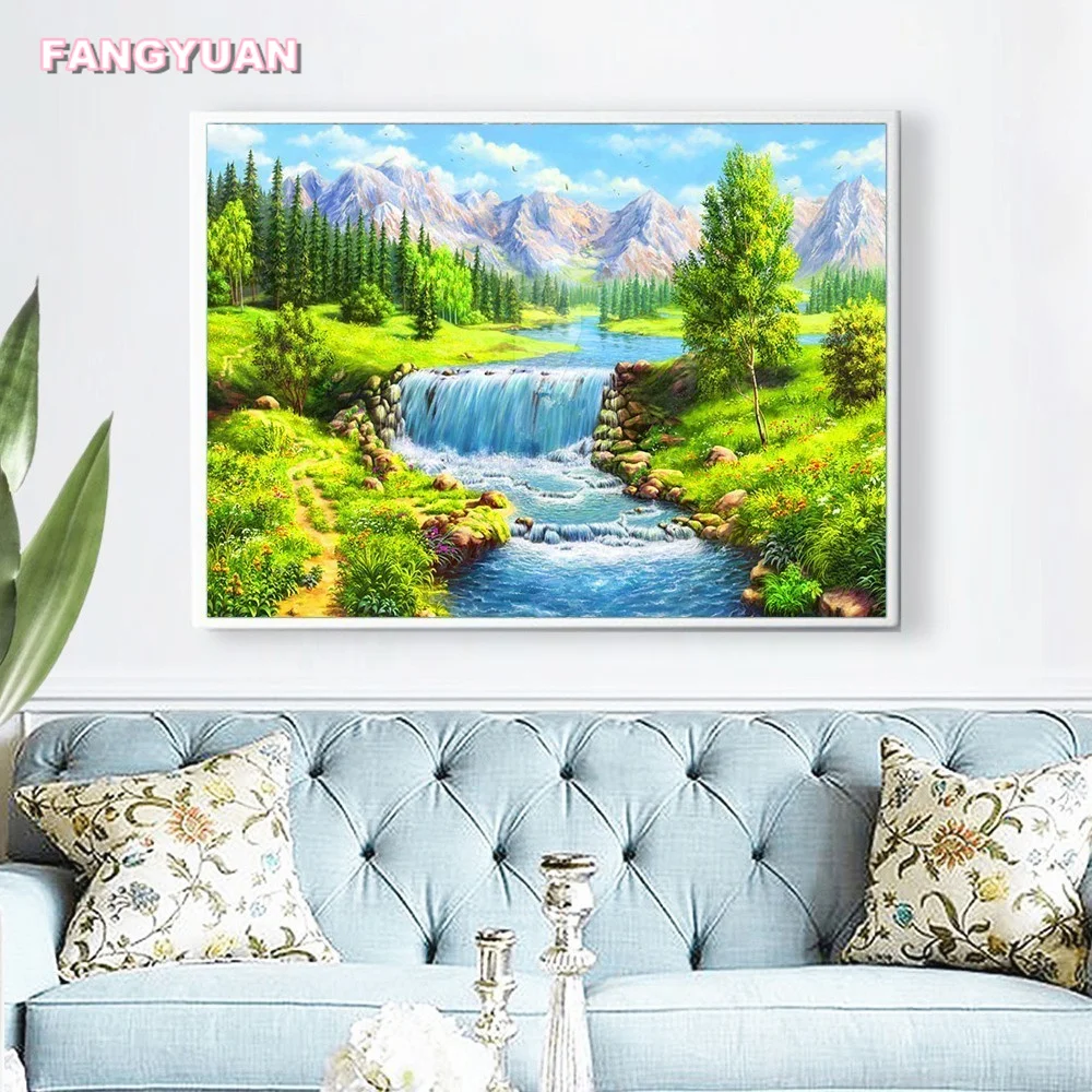 Алмазная 5D Вышивка сделай сам, мозаика, природный пейзаж, водопад,...