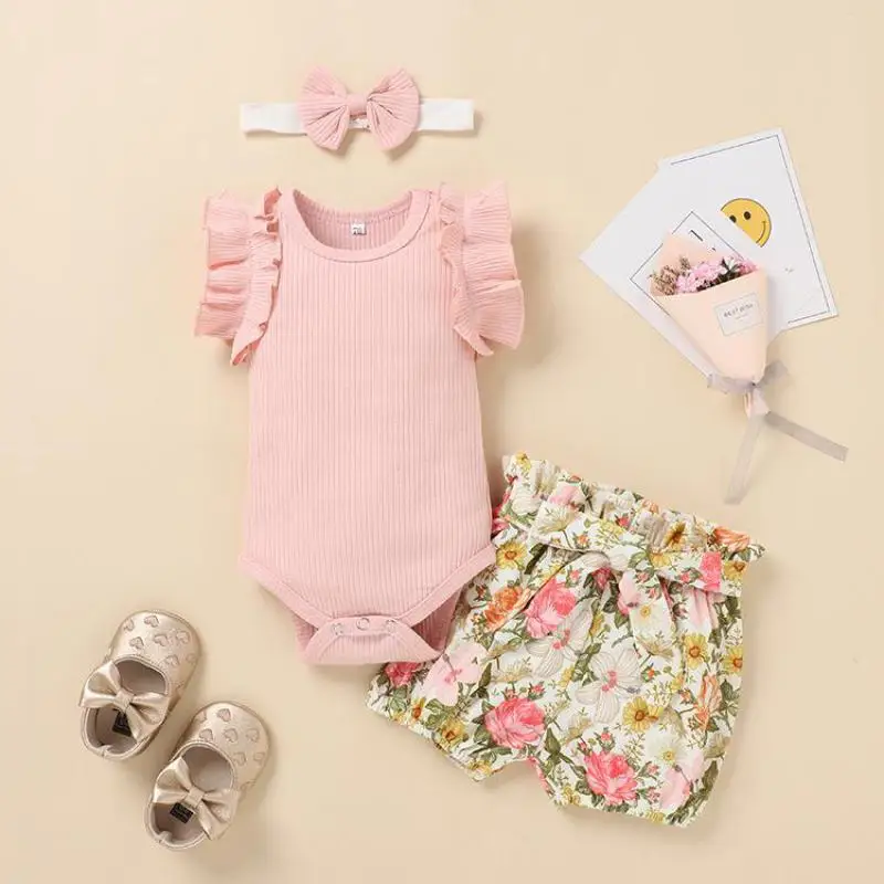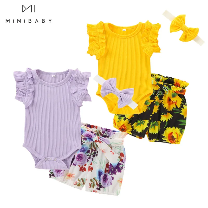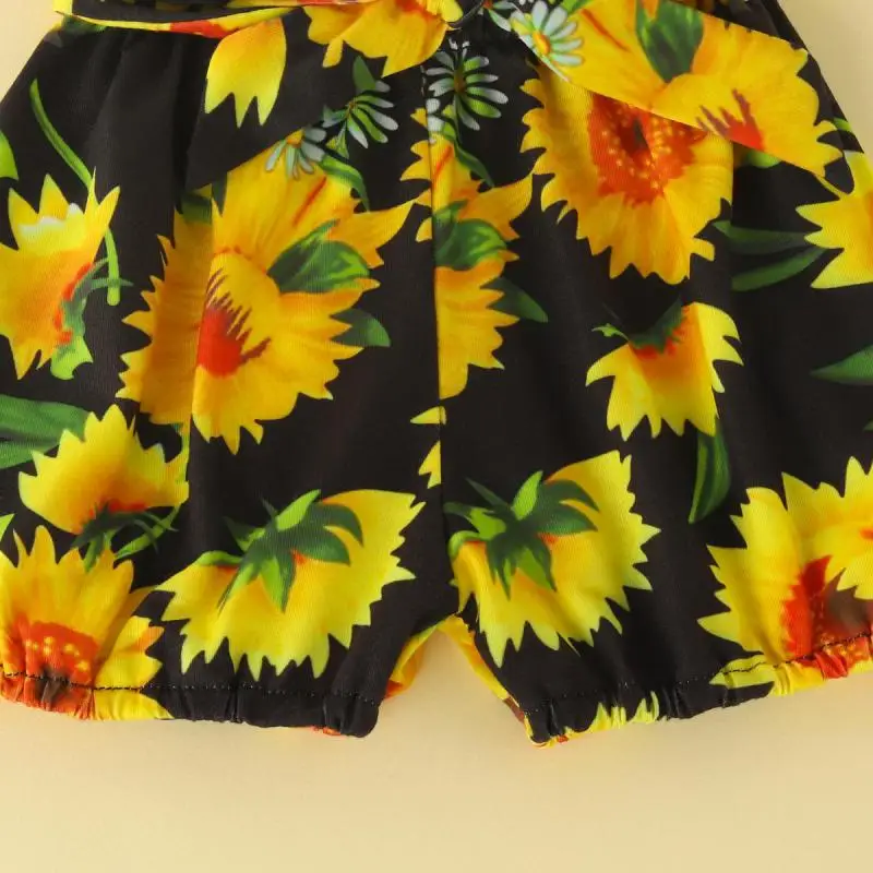 2022 г. Комплект для новорожденных девочек, одежда для близнецов летнее боди + шорты, комплект из 3 предметов, одежда для малышей с рисунком подсолнуха костюм для малышей