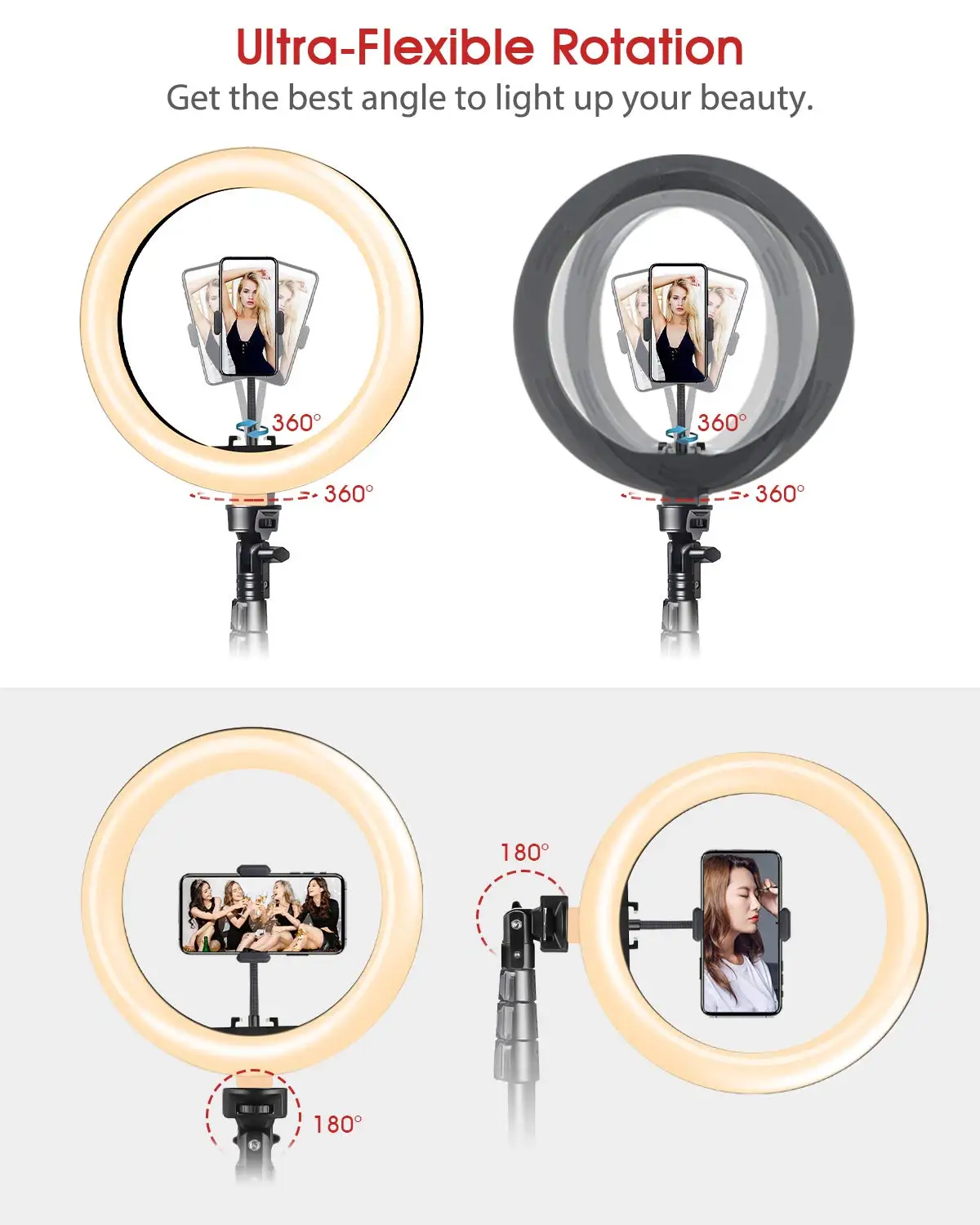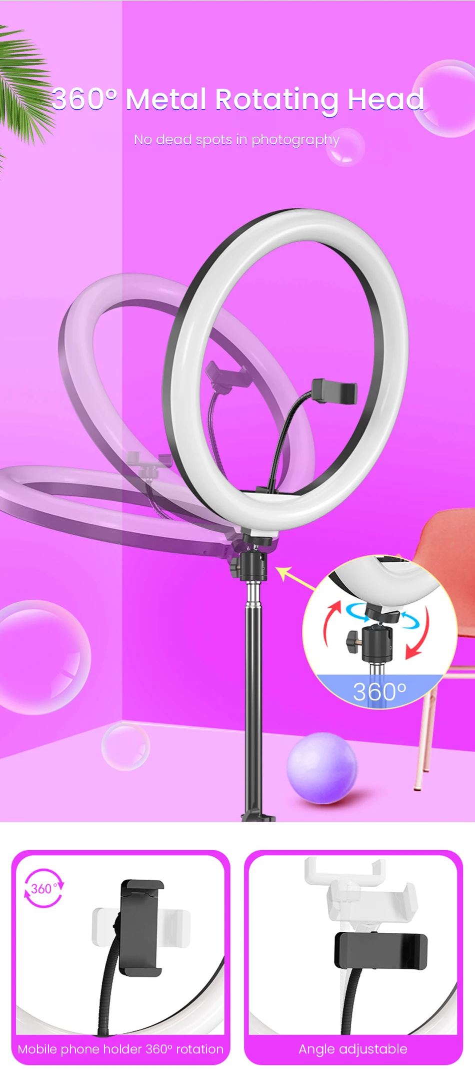 Кольцевой светодиодный светильник, 10-13 дюймов, со штативом, кольцевой светильник для селфи