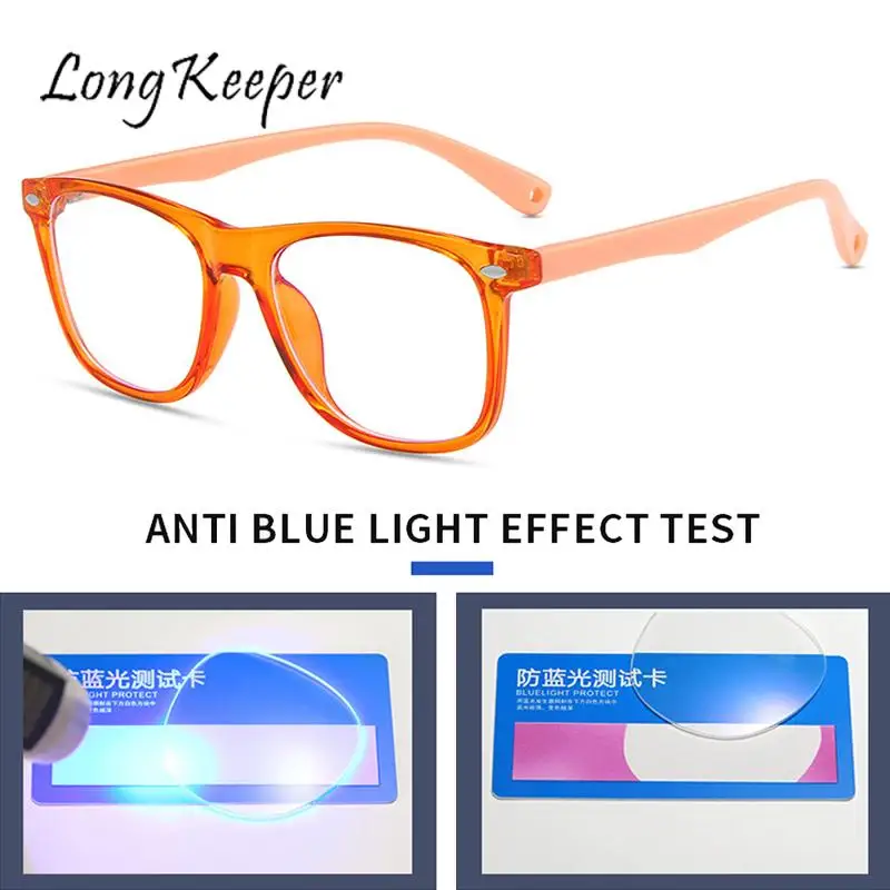 Квадратный анти-синий светильник, очки для детей, компьютерные очки, силиконовые гибкие защитные очки, опт...