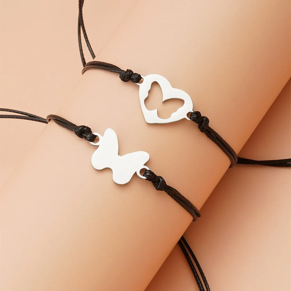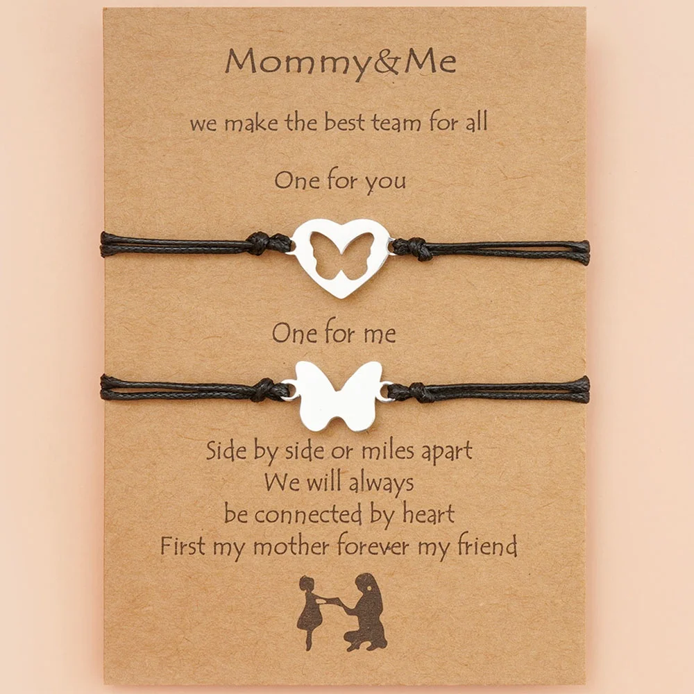 Браслеты для мамы и дочки, с сердечком и бабочкой, 1 комплект2 шт.