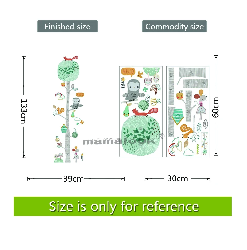 DIY Лес животных деревья высота Наклейка на стену Декор нордический...