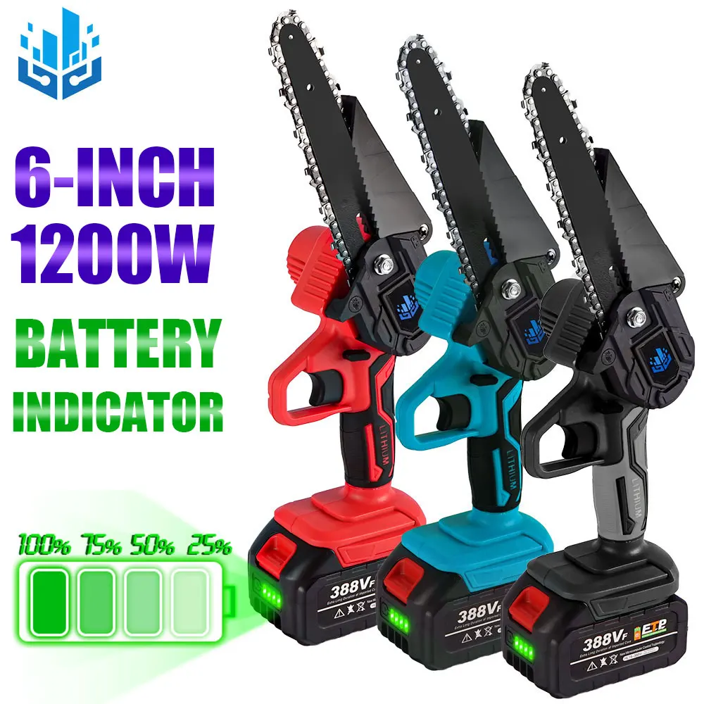 Пила цепная Садовая, 6 дюймов, 18 в, с индикатором заряда батареиДля аккумулятора Makita 18V6-дюймовая бензопила:Для аккумулятора Makita 18VМощность: 1200 ВтМатериал: ABS + металлДлина направляющей пластины: 6 дюймовСкорость холостого хода: 4000 об/минВес: 850 г (батарейка в комплект не входит!)Все двигатели из медного провода, высокая мощность, быстрая резка, высокая эффективность.Литиевая батарея 128 в, с индикатором емкости батареиНапряжение: 20 вЕмкость: 10000 амhВес: 320 гВысота: около 4,5 смОн более Портативный и удобный в использовании.Литиевая батарея 388VF с индикатором емкости батареиНапряжение: 20 вЕмкость: 20000 мАчВес: 540 гВысота: около 6,5 см10 литиевых батарей, длительный срок службы батареи.100% увеличение времени работы аккумулятораЭффективность аккумулятора 388VF на 30% выше, чем обычная батареяОсобенность:С индикатором емкости батареиПредохранительный замок для бензопилы, Безопасный в использованииПерезаряжаемая Электрическая цепная пила светильник и портативная, длительный срок службы батареи, не повредит кору.Нескользящая ручка с резиновым покрытием может долгое время удерживаться без усталости.Двигатель из чистой меди, высокая мощность, высокая скорость резки, повышение эффективности.Высококачественный переключатель, регулировка скорости, бесступенчатое изменение скорости.Интеллектуальный плата управления цепью, защита от перегрузки, для удовлетворения различных потребностей в строительстве.Специальная направляющая пластина и шарик из вольфрамовой стали не требуют смазывания, поэтому машинка может снизить сопротивление во время работы и уменьшить износ машины.Высококачественная направляющая цепь, глубоко закаленная, более износостойкая, ровная резка.Посылка тация:1 * бензопила + 1 аккумулятор 128VFИли1 * бензопила + 2 аккумулятора 128VFИли1 * бензопила + 1 батарея 388VFИли1 * бензопила + 2шт 388VF батарея