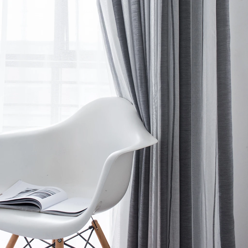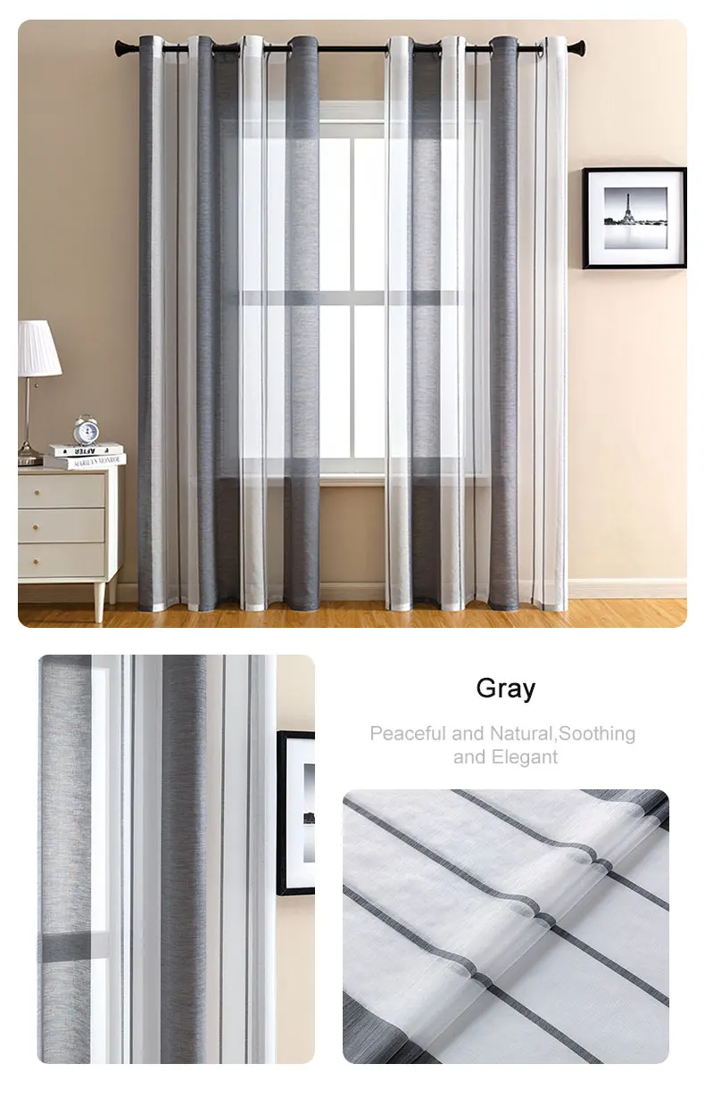 Серые полосатые вуаль тюлевые шторы для гостиной, спальни, современ...