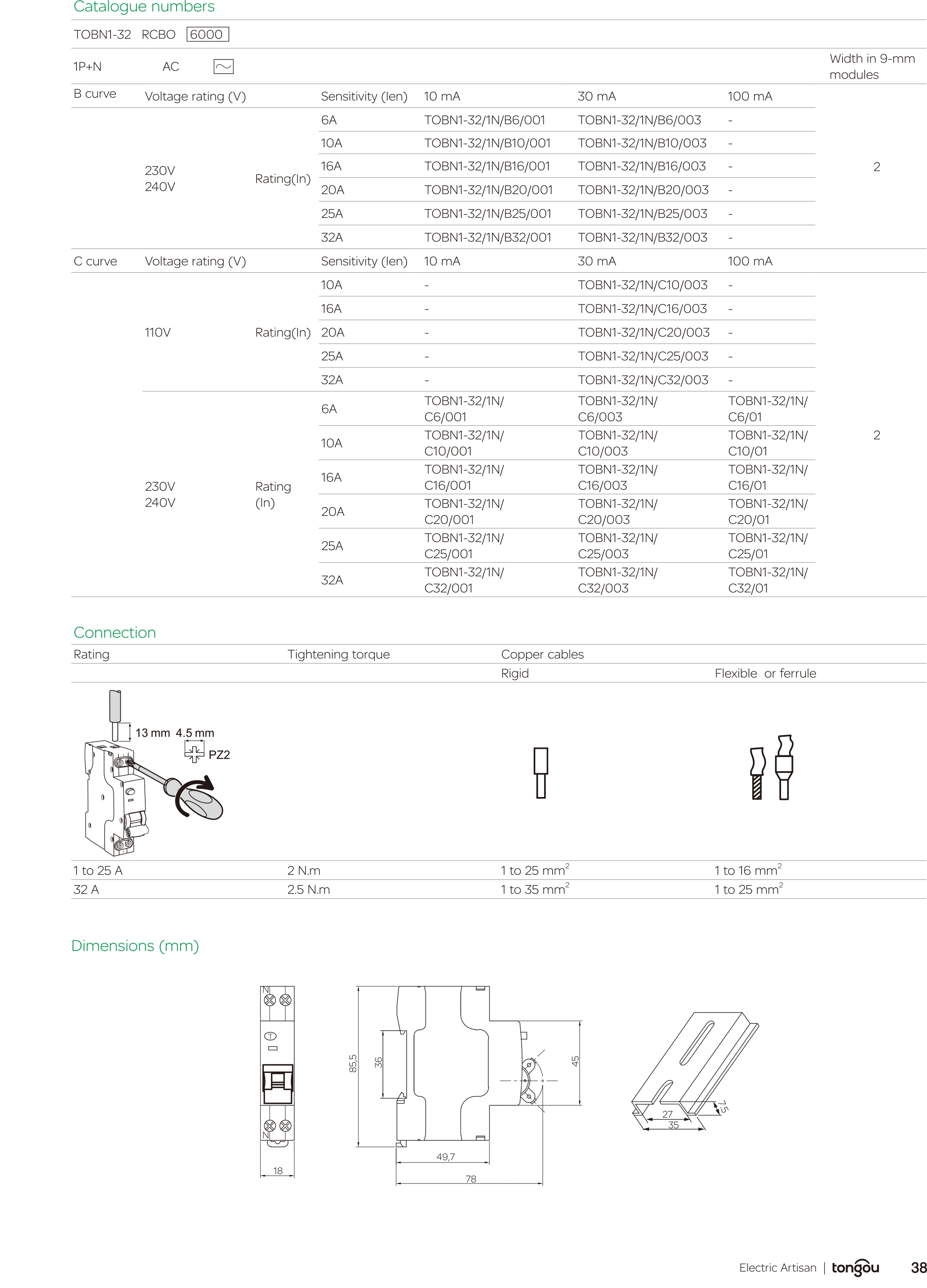 Автоматический выключатель переменного тока с дифференциалом защиты от перегрузки по току и утечки, 10 а, 30 ма, 6 ка, 18 мм, 1P + N