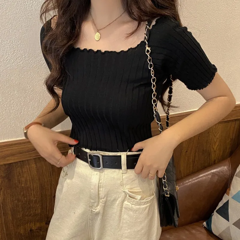 Кроп-топ женский трикотажный с квадратным вырезом, короткий рукав, ...