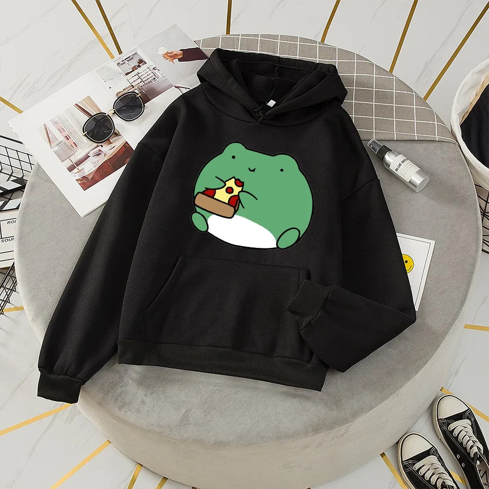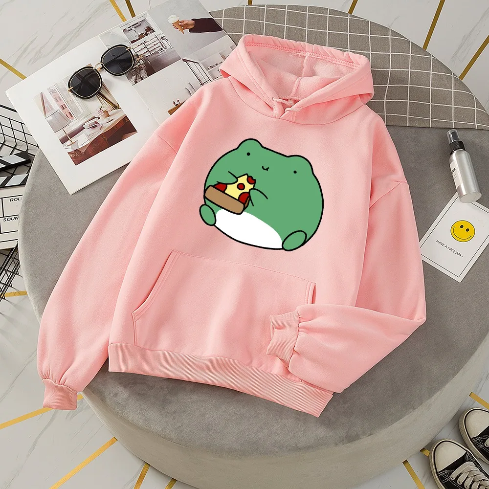 Худи женское оверсайз с капюшоном, милый пуловер в стиле Харадзюку с лягушкой, худи с длинным рукавом, Корейская Милая одежда, осень-зима