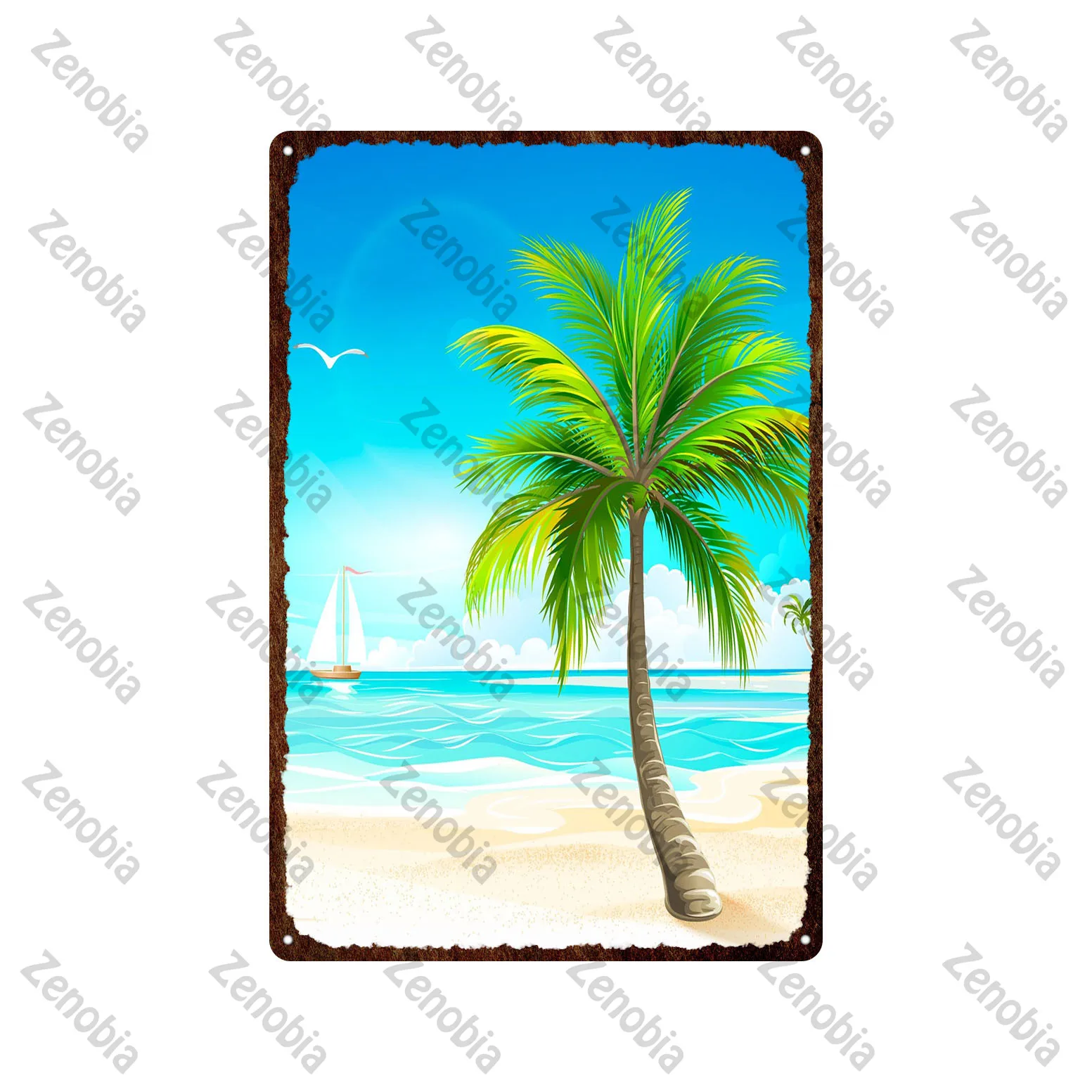 Летняя Пляжная Оловянная табличка с рисунком, металлическая пластин...