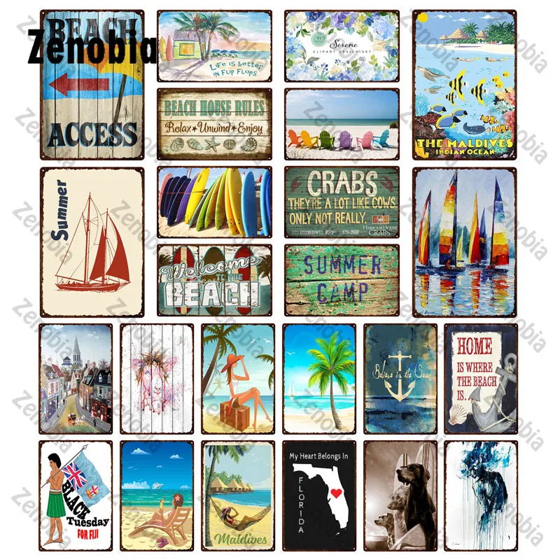 Металлический знак, украшение для пляжа, жестяной знак ржавчины, на...