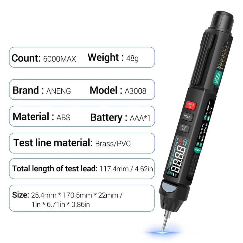 Цифровой мультиметр A3008, Бесконтактный автомобильный вольтметр с разрешением 6000 отсчетов