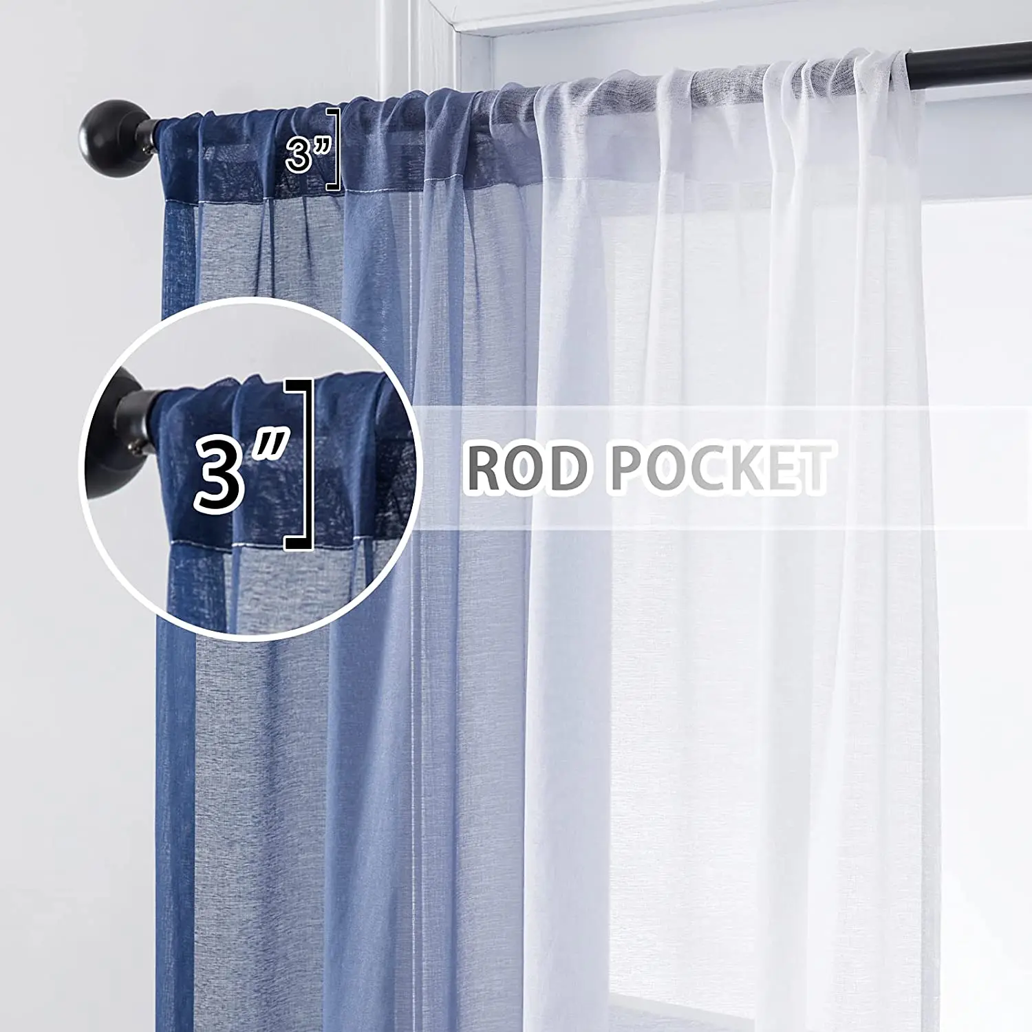 DK занавески из голубого тюля с градиентом, для гостиной, спальни, ...