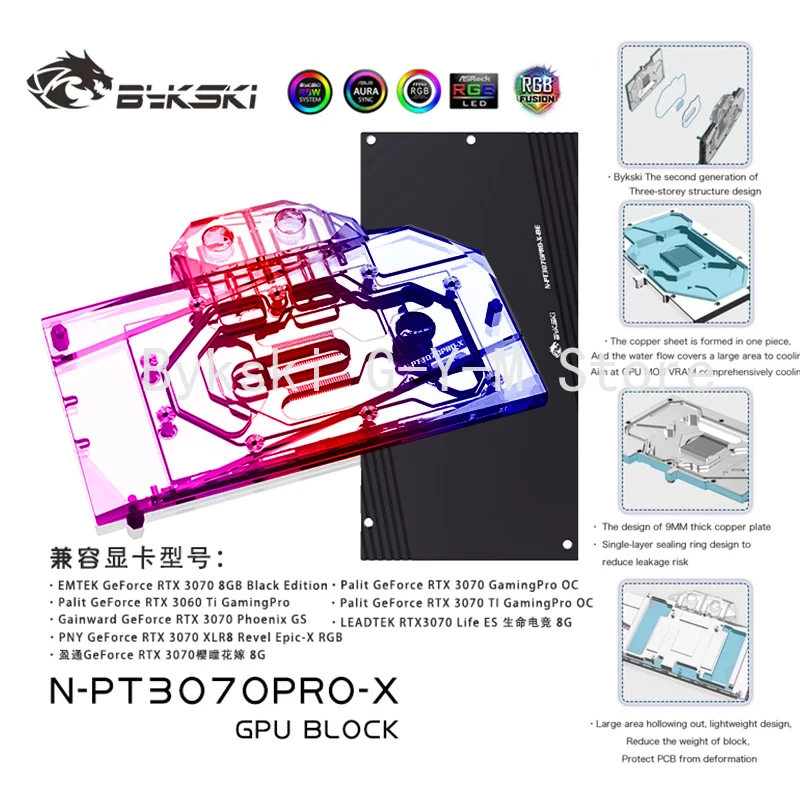 Водяной блок Bykski для Palit RTX 3070 3060Ti Gaming Pro OC, графическая карта, полное покрытие медного радиатора, A-RGBRGB-N-PT3070PRO-X