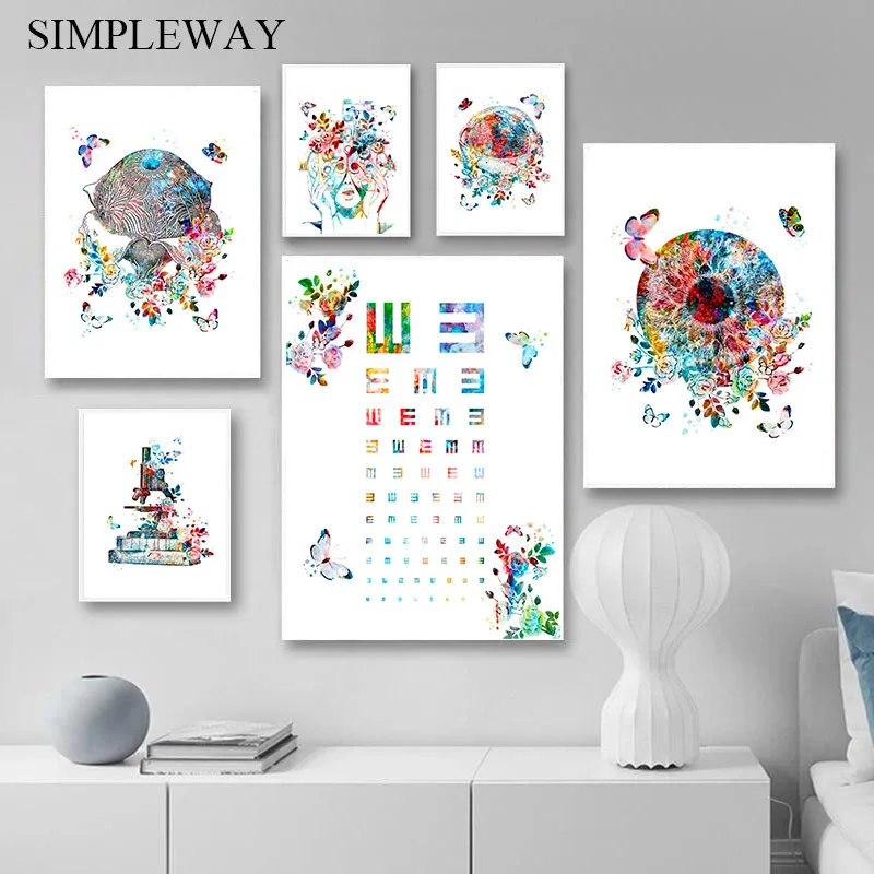 Акварель глаз анатомии Абстрактная живопись на холсте, настенная жи...