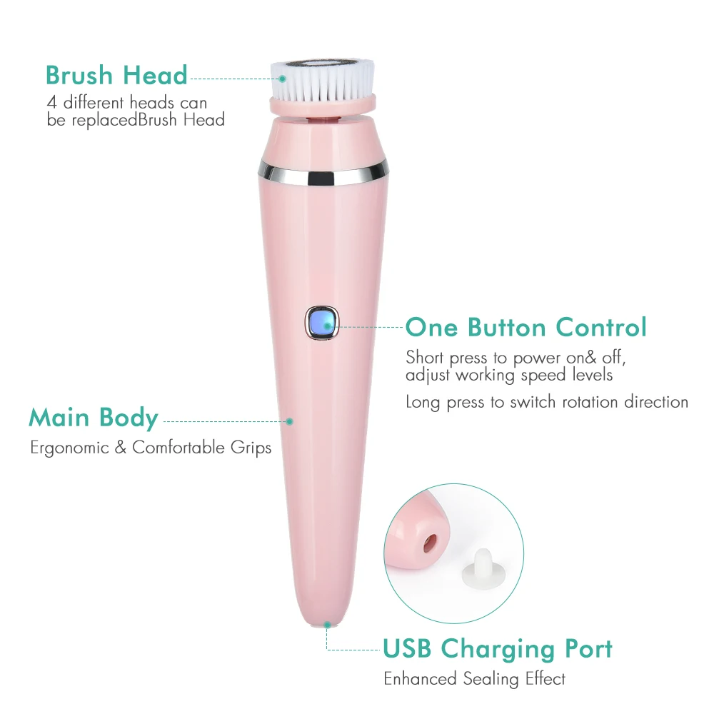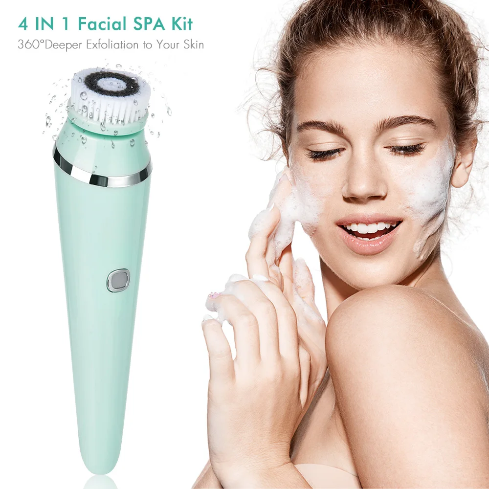 Электрическая щетка для чистки 4 в 1, звуковая вращающаяся щетка для чистки, система для глубокой чистки и удаления черных точек