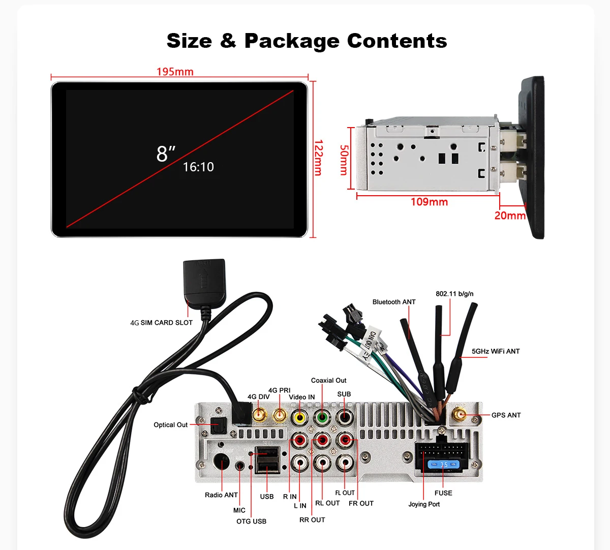 Радуясь 8 дюймов 1Din GPS Multimidia Android 10 Автомобиль Радио Стерео HD1280 * 800 Универсальный головное устройство авто Carplay DVR аксессуары