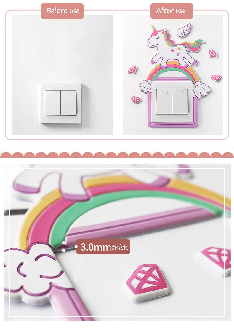 Наклейка на выключатель, животное, единорог, крышка, мультфильм, де...