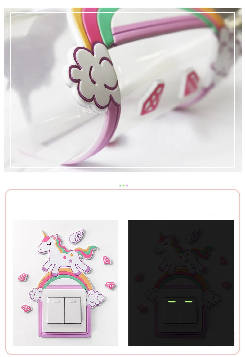 3D светящийся Переключатель наклейка мультфильм Единорог Фламинго домашнее украшение 3D силиконовый ВКЛ-ВЫКЛ переключатель Крышка выход Настенная Наклейка Декор
