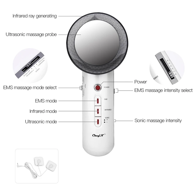 Ультразвуковой массажер для лица CkeyiN 3 в 1, инфракрасный кавитационный массажер для тела с функциями сжигание жира, снижение веса, Липо, подтяжка кожи