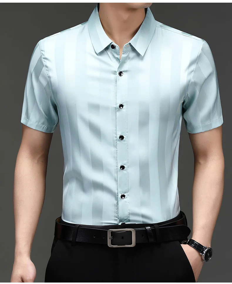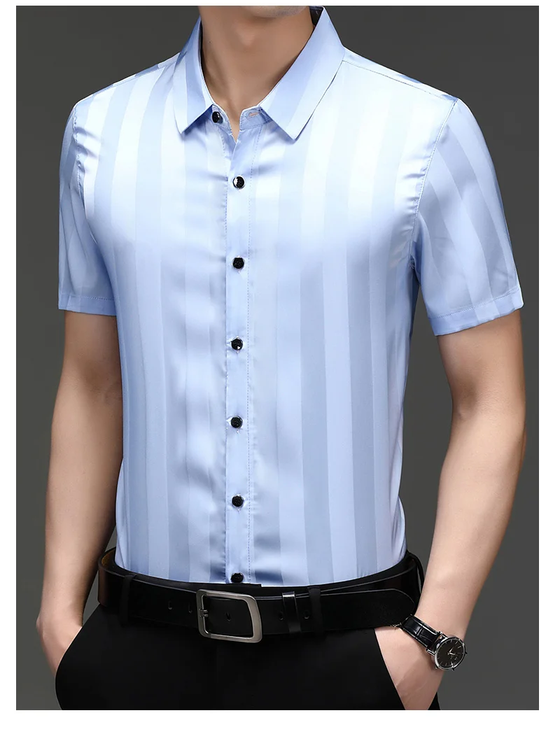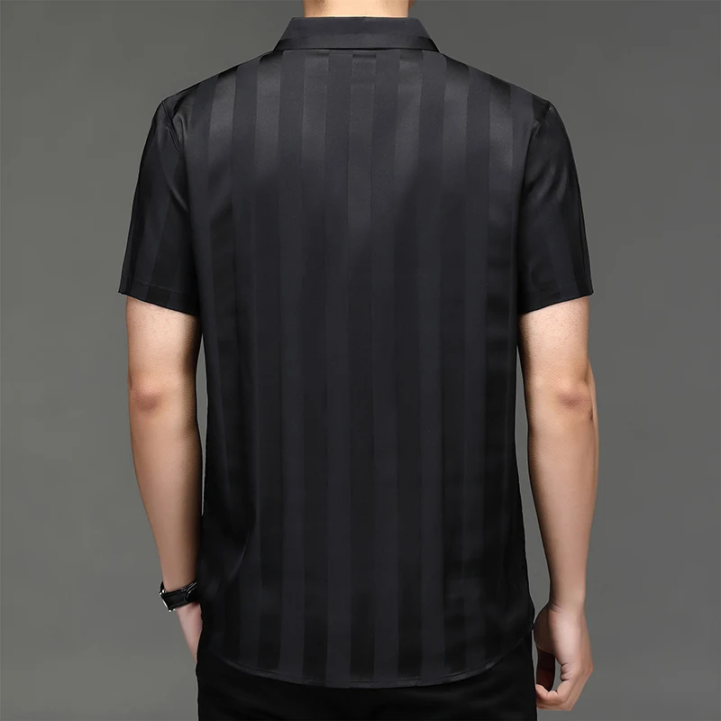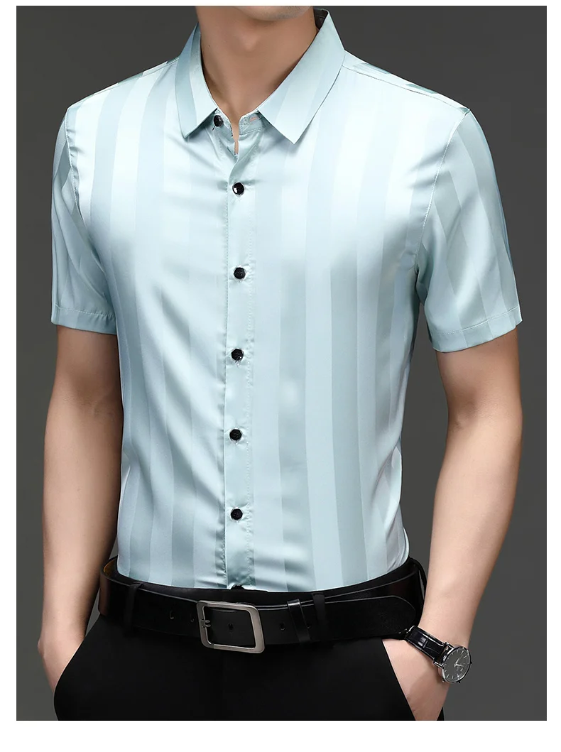 Рубашка мужская с коротким рукавом, шелк, Повседневная приталенная,...
