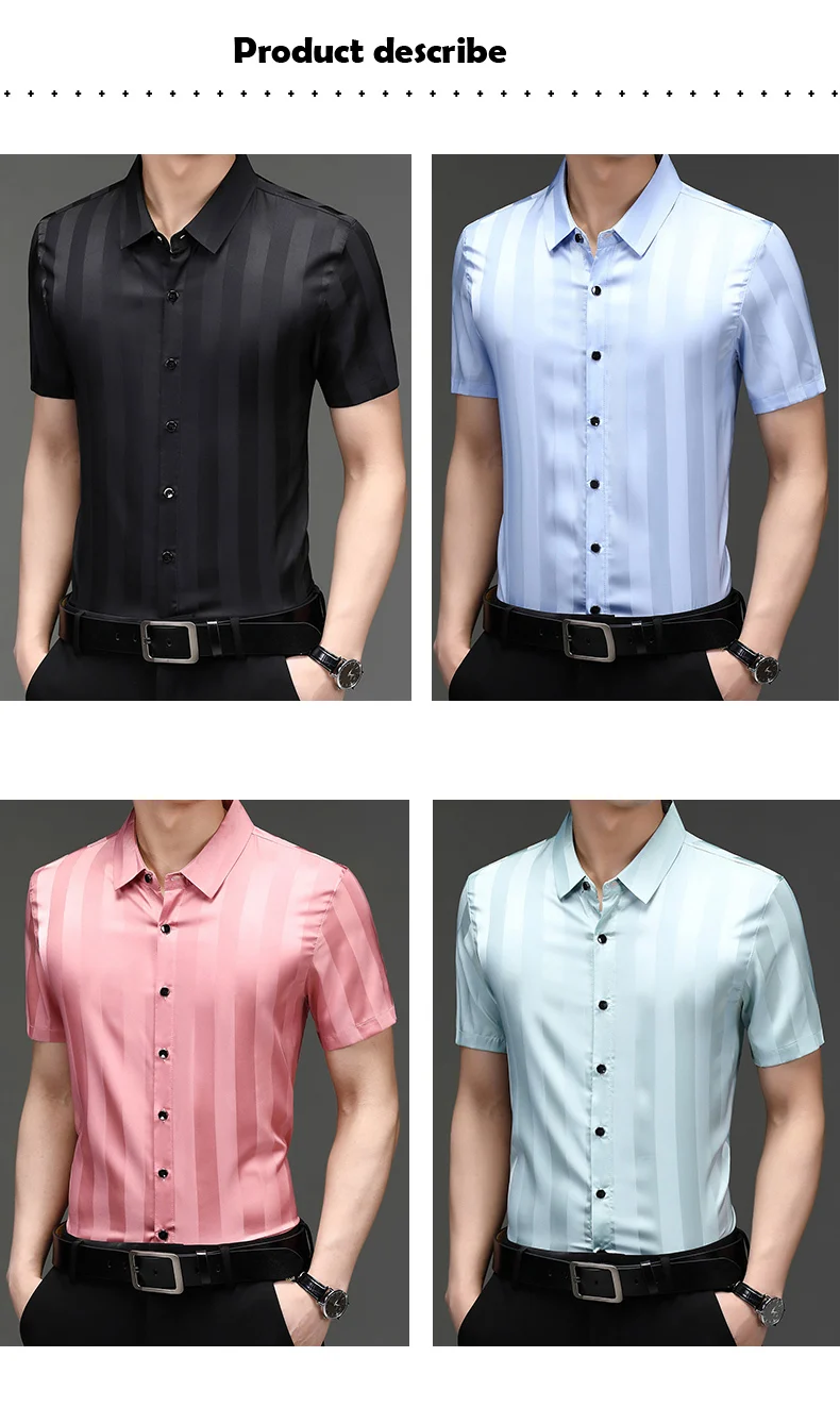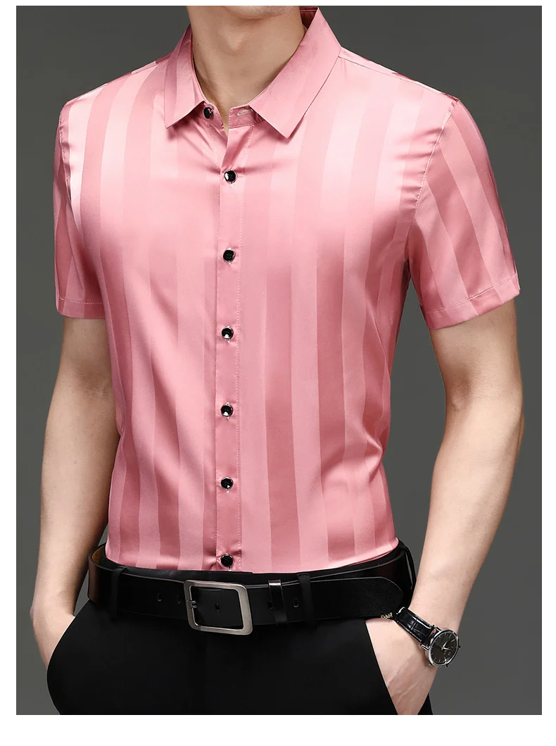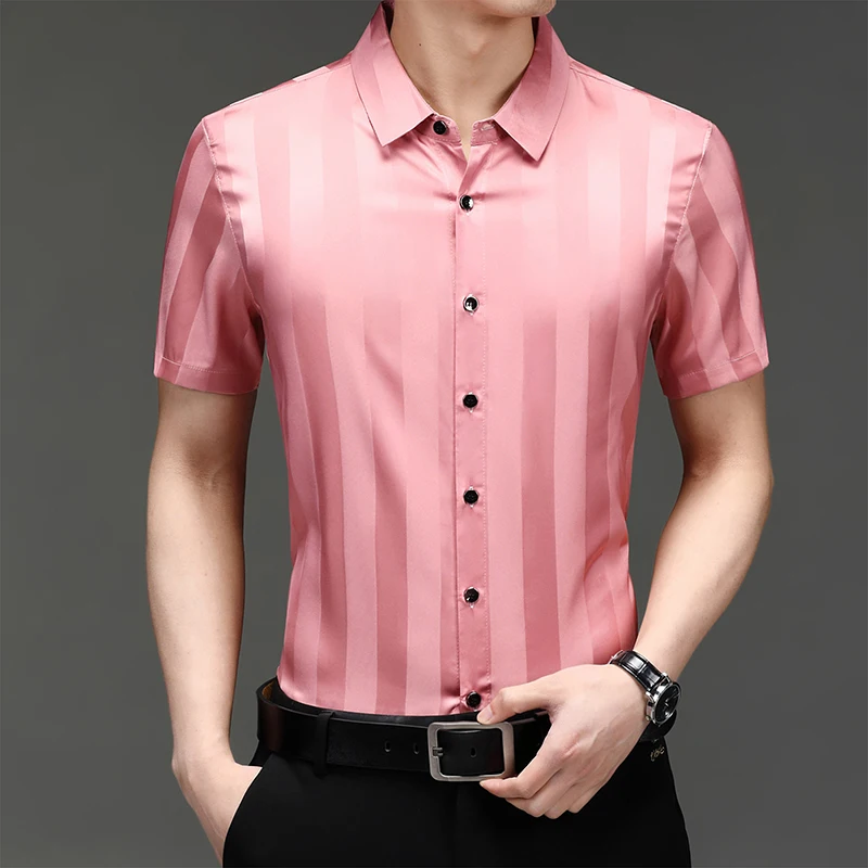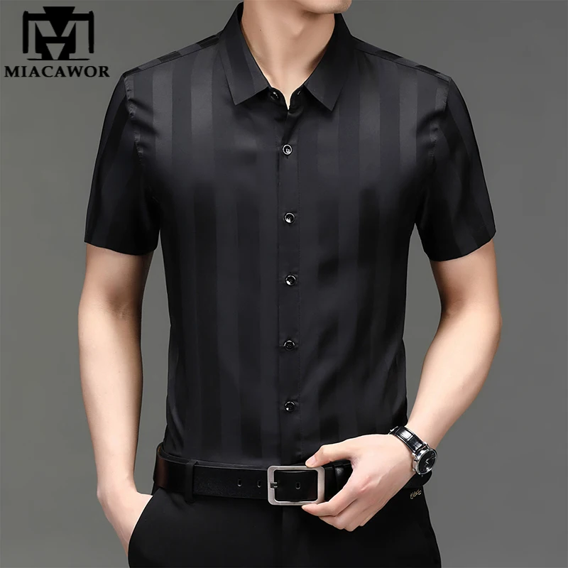 Рубашка мужская с коротким рукавом, шелк, Повседневная приталенная,...