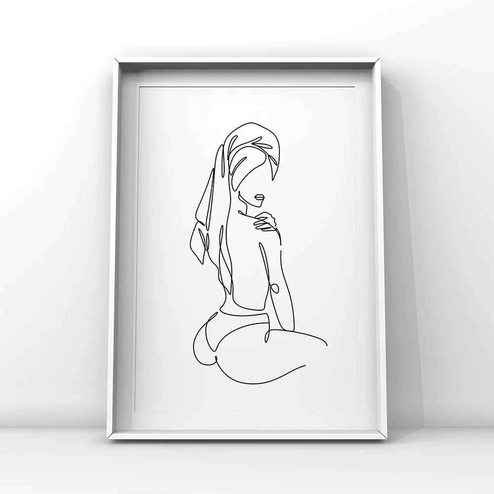 Абстрактная Художественная печать на лице женщины черно-белая Минималистичная линия для ванной, рисование на холсте, художественный постер для ванной, настенный художественный Декор