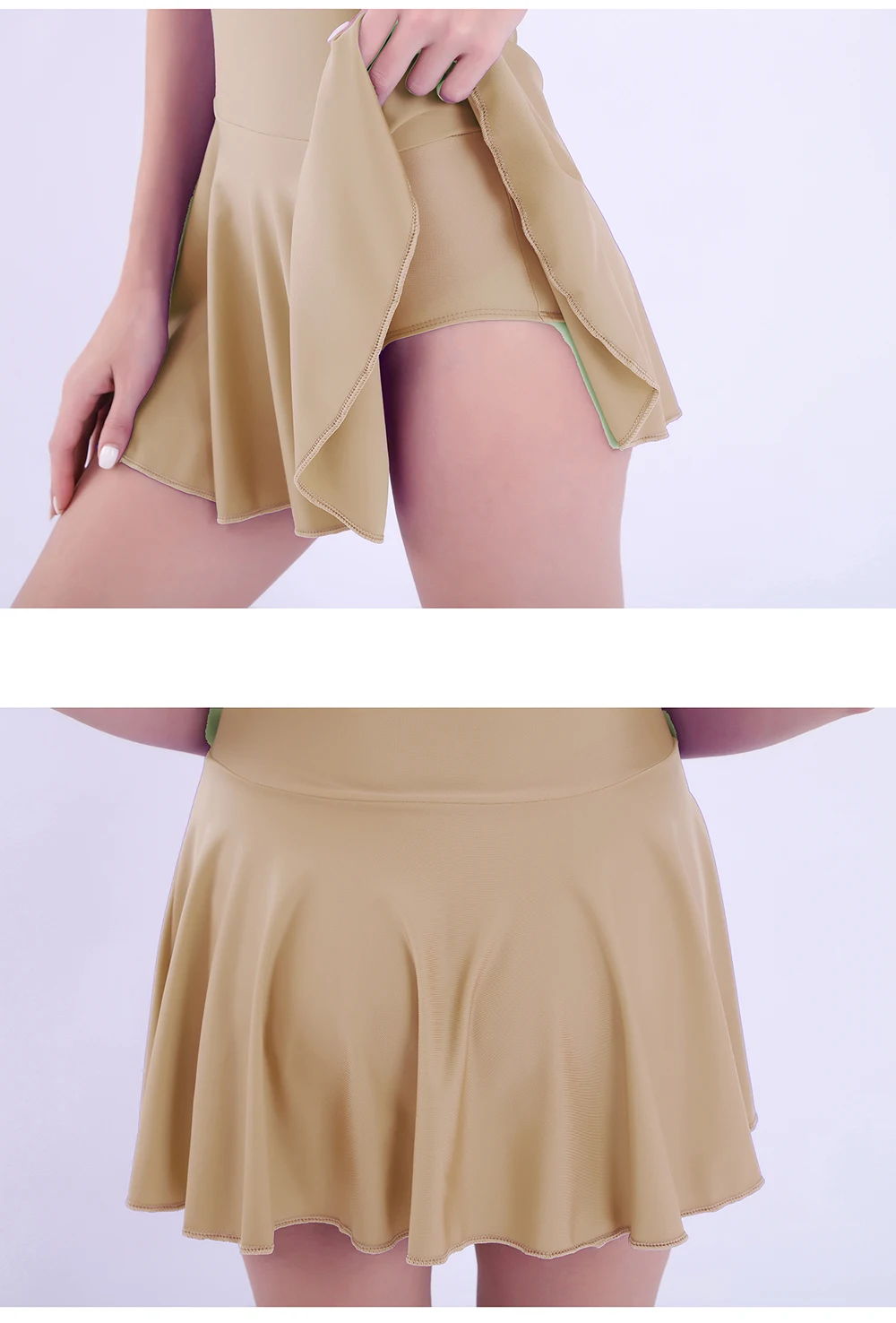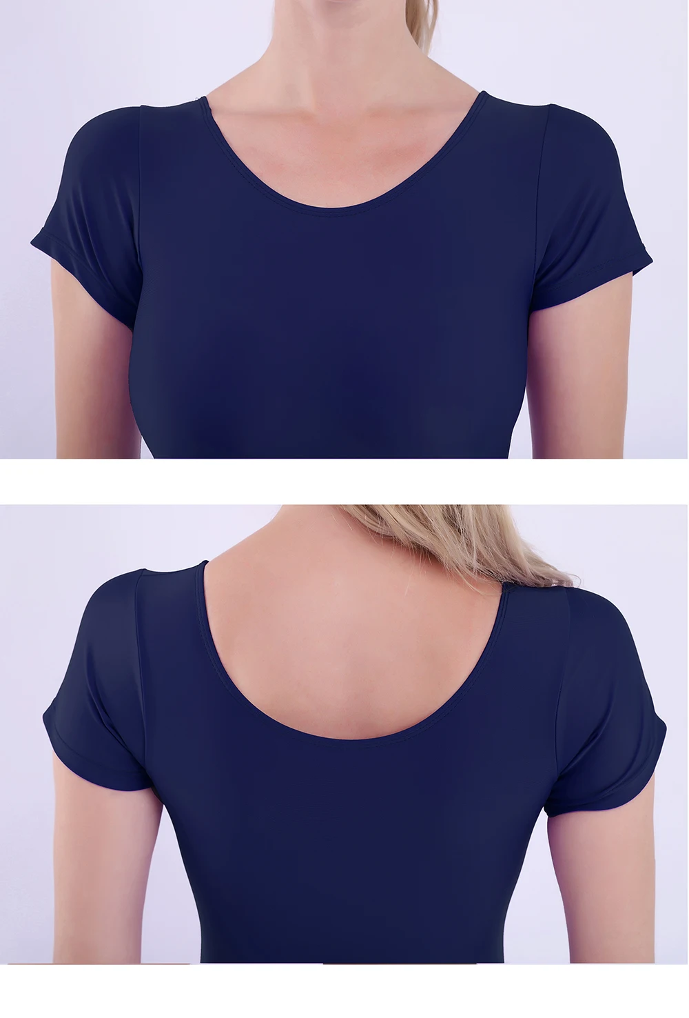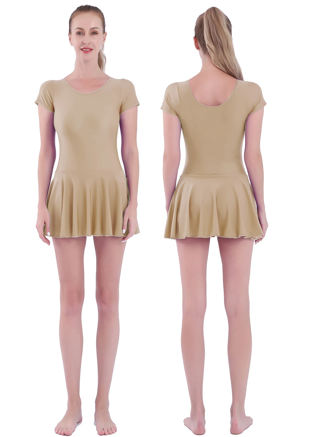 ★Изготовлен из нейлона и спандекса, хорошо растягивается, мягкий, дышащий, Быстросохнущий★В собран в трусики внизу★Цельнокроеное трико, легко надевать и снимать★Женское платье с короткими рукавами, круглым вырезом и юбкой★Предназначен для балетных танцоров, гимнастов, ведущих спортсменов и женщин, выступлений на сцене и т. д.