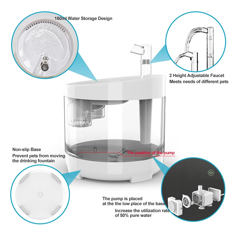 Легко мыть плавающие волосы и пыль подноса для воды, больше подходит для домашних животных угол питьевой воды