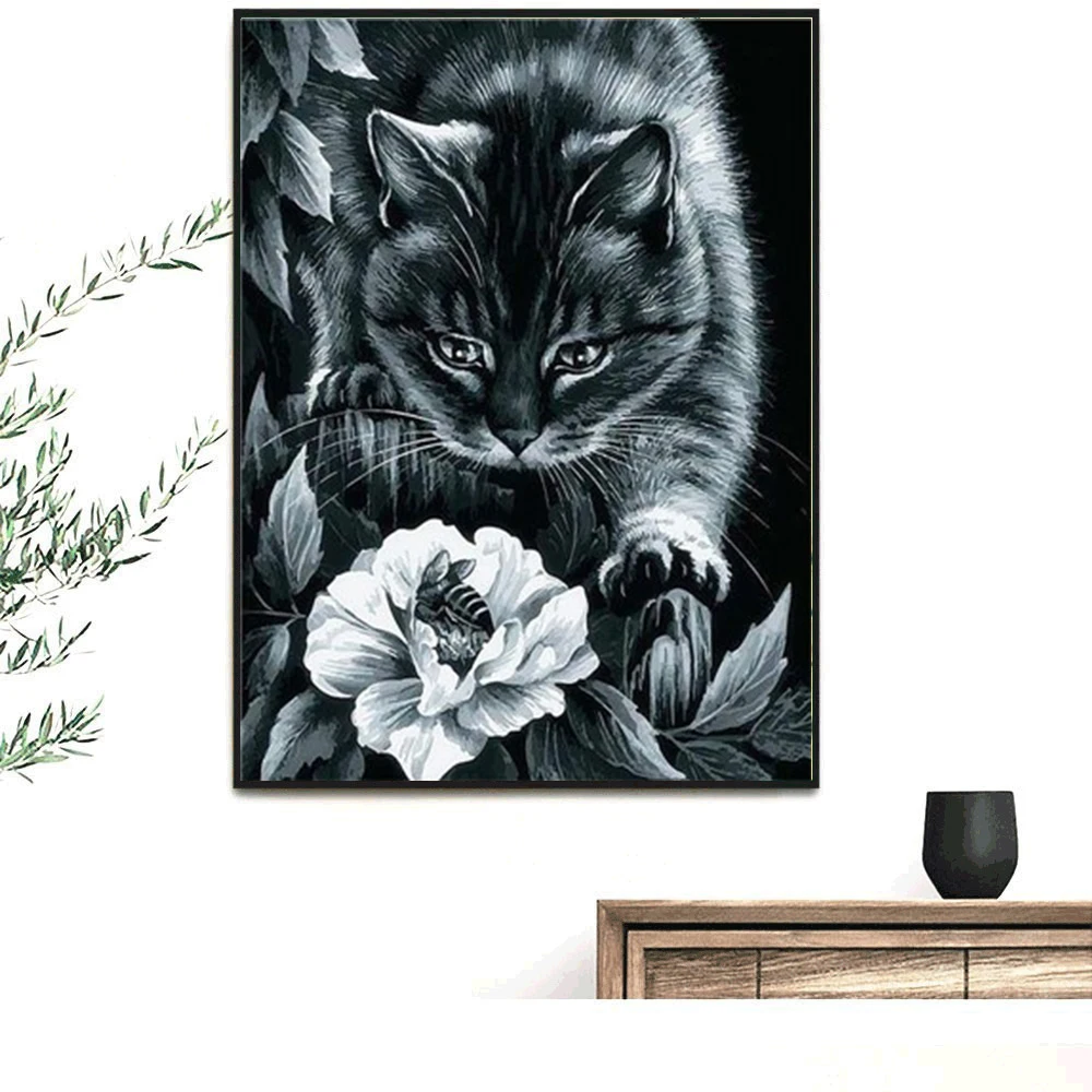 Размер холста полный круг алмаз 5d Diy Алмазная Вышивка Черный кот Алмазная Живопись Вышивка крестом Стразы Мозаика Украшение