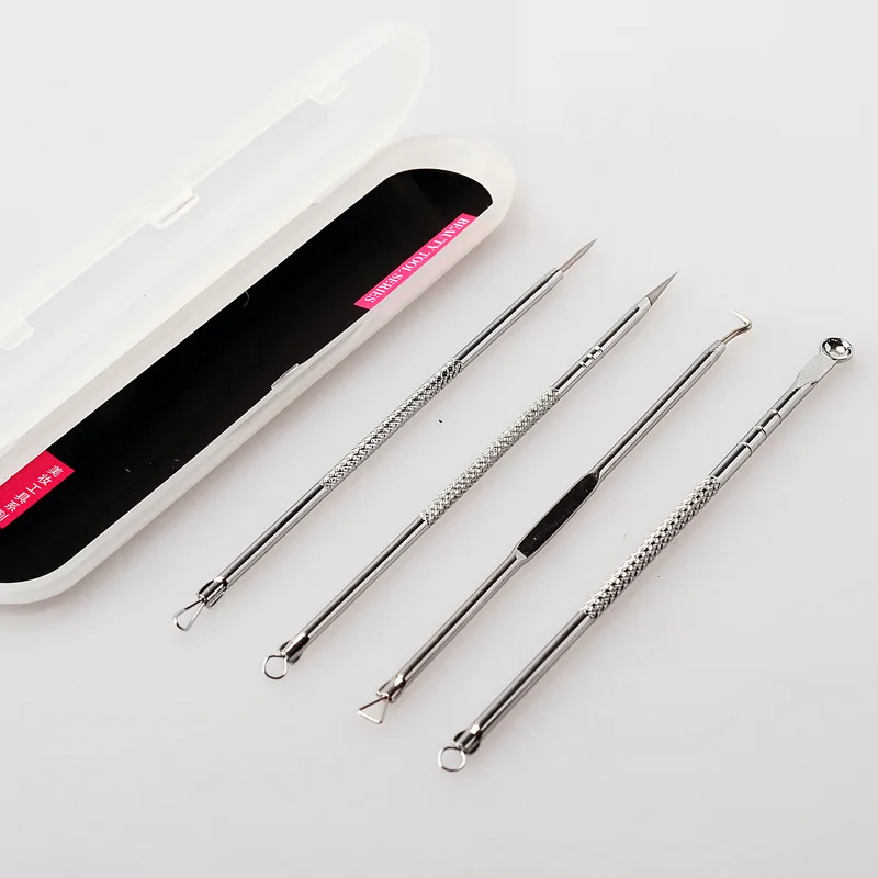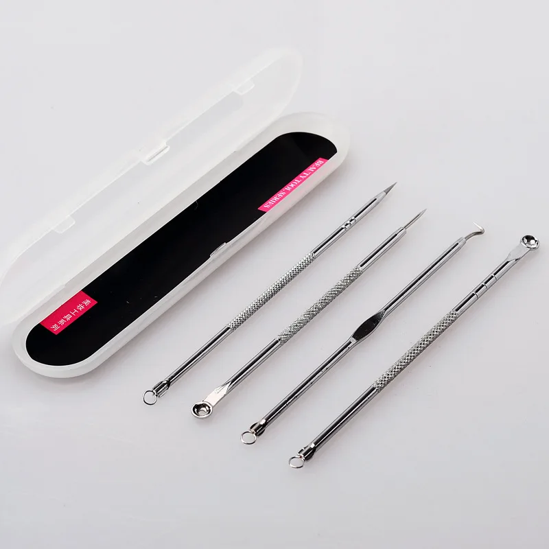 4 шт., нержавеющая игла для ухода за лицом, для удаления черных точек и прыщей, экстрактор угрей и комедонов