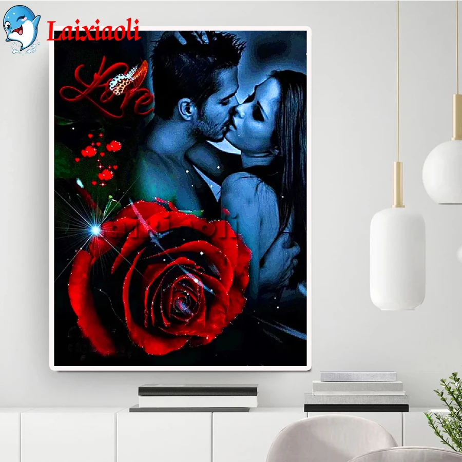 Алмазная 5d картина с розой для пар, вышивка из страз, полноразмерная мозаика с любовным поцелуем, вышивка крестиком, украшение для творчества