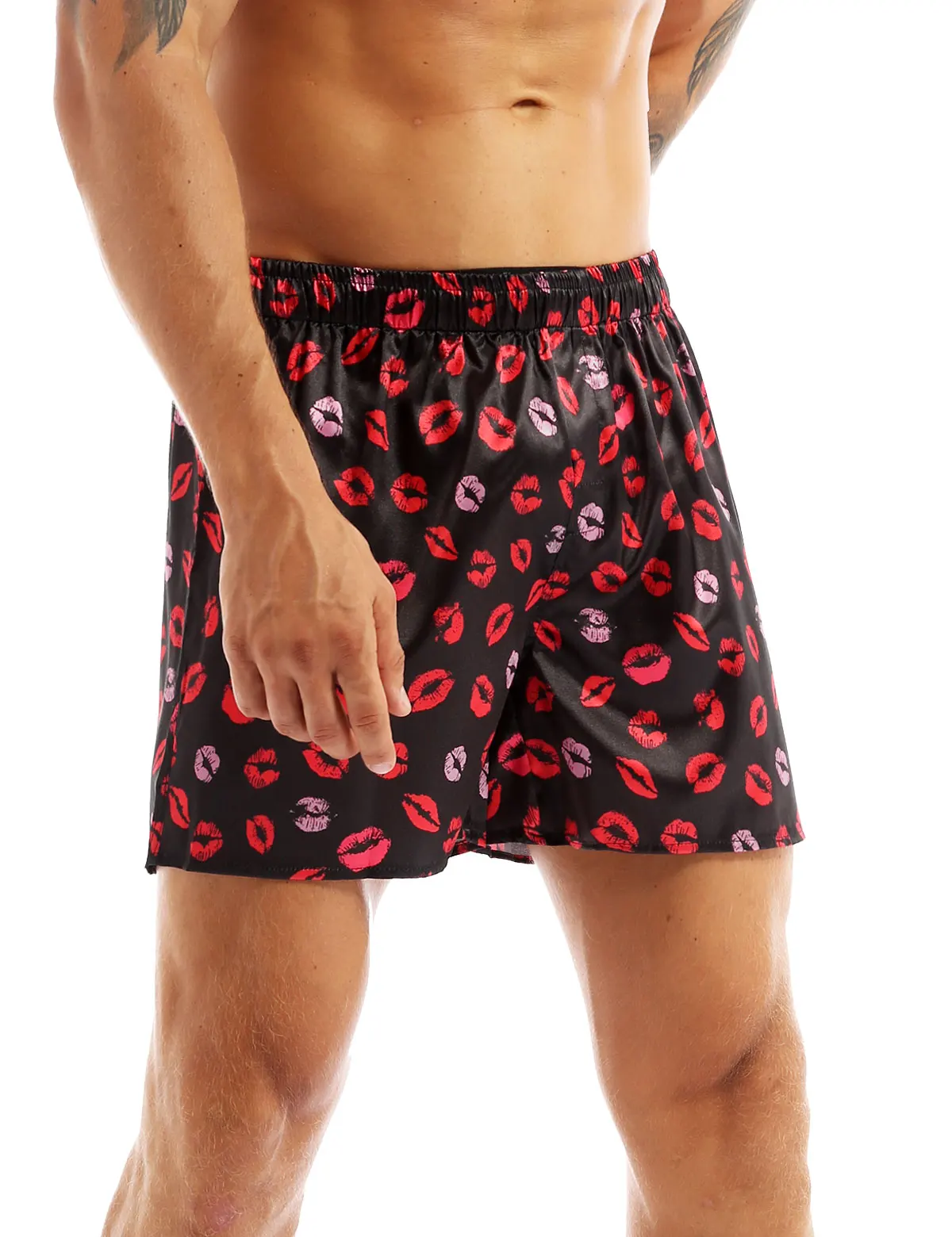 Модные мужские шелковые атласные шорты-боксеры с принтом в виде сердца, летние свободные спортивные шорты для отдыха, Пижама