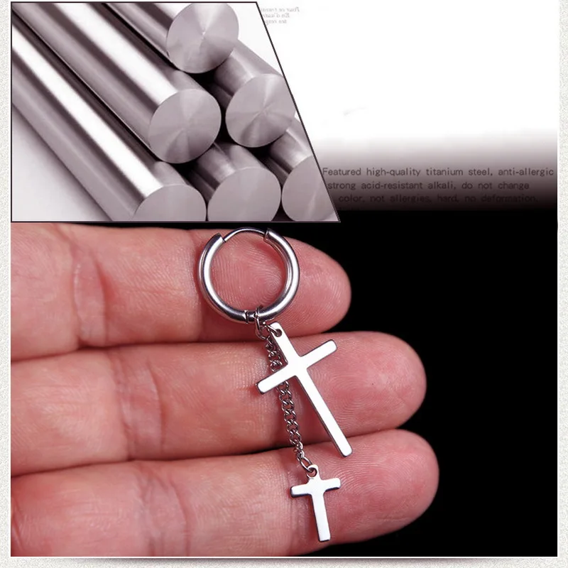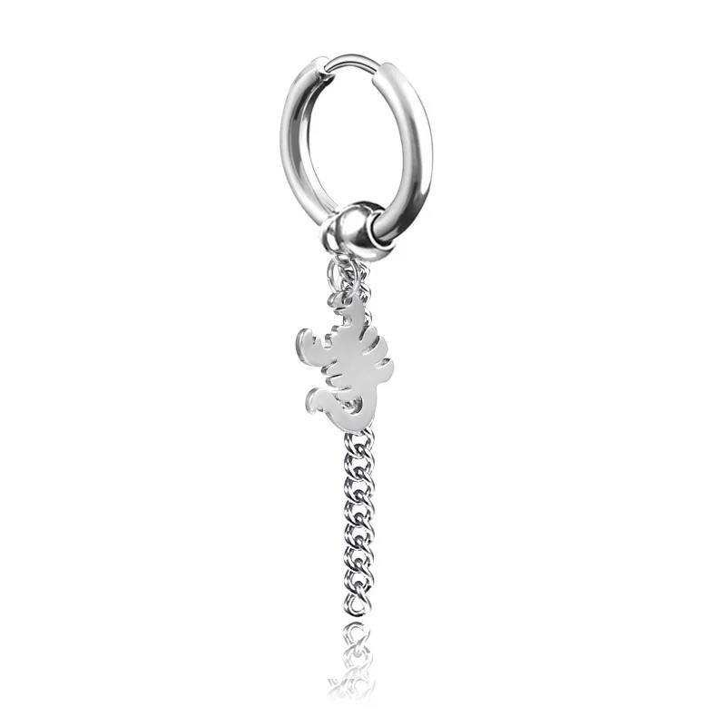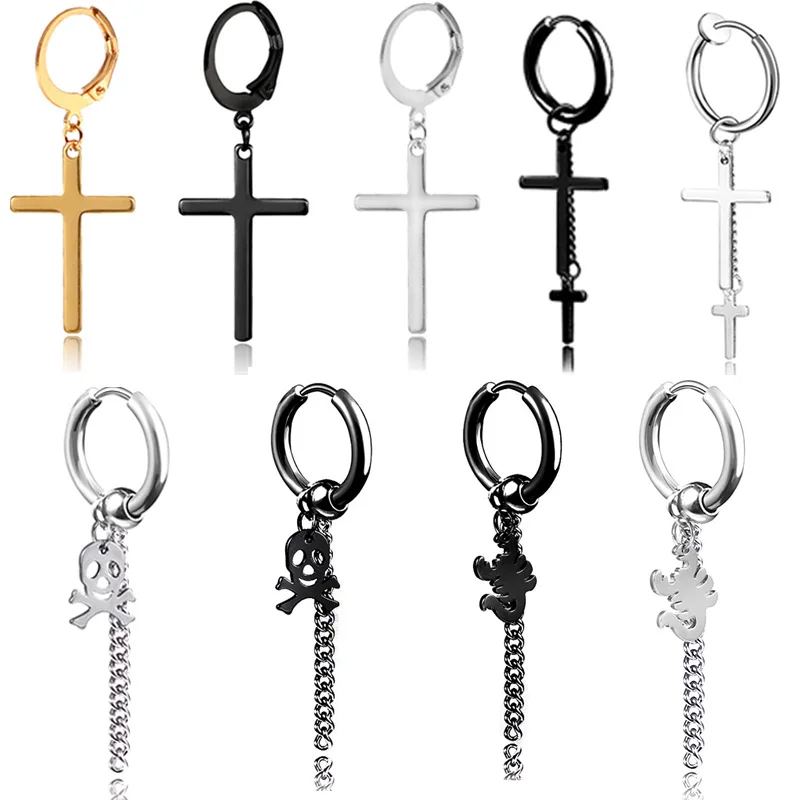 Серьга-гвоздик Rinhoo из нержавеющей стали для мужчин и женщин, Ювелирное Украшение с крестом, черепом, звездой, скорпионом, кисточкой, цепочкой, клипса, стильная бижутерия в стиле хип-хоп, 1 шт.