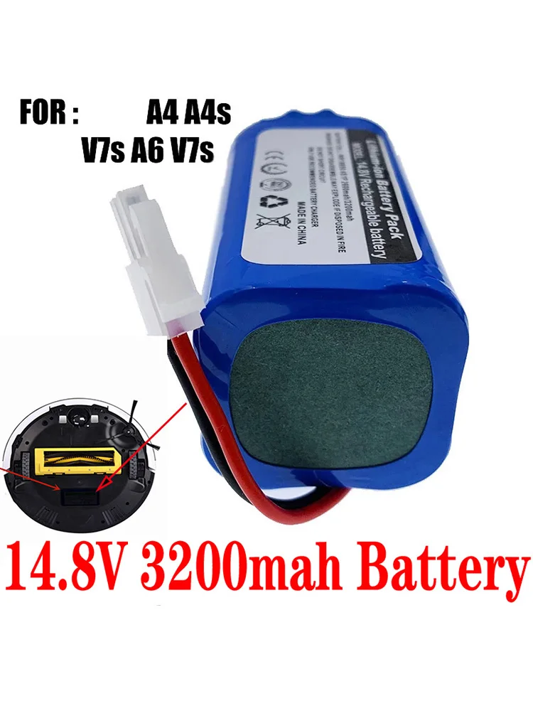 Батарея напряжение: 14,4 V/14,8 V Емкость аккумулятора: 3200 мАч Тип батареи: литий-ионный аккумулятор Цвет синий Батарея Размер: 7,4*3,8*3,8 см Преимущество: 1. Перезаряжаемая литий-ионная аккумуляторная батарея емкостью 3200 мА · ч делает ваш вакуум RoboVac более длительным и длится около 2-3 часов на полную зарядку. 2. Легко заменить аккумулятор. Держите RoboVac в чистоте от грязи, пыли, мусора, волос и всего остального на полу. 3. Надежные функции безопасности со встроенной защитой для предотвращения короткого замыкания батареи, перезаряда, перегрузки, перегрева, перегрузки по току и т. д. 4. Отличная Гарантия: 30-дневная гарантия возврата, гарантия 12 месяцев. Совместимость с популярными моделямиПрофессионально разработанный, чтобы заменить оригинальный аккумулятор, он может быть идеально подходящим для вашего пылесоса. Совместимость с: Для CONGA Excellence 990 CONGA 950 CONGA 1090 Для Deebot N79, Deebot N79S, Deebot DN622, Deebot DN621, Deebot 601/605 Tesvor X500 Для Eufy RoboVac 11 RoboVac 11S RoboVac 11S. RoboVac 12 RoboVac 15S RoboVac 15C. .. RoboVac 15C.RoboVac 30 RoboVac 30C. .. RoboVac 30 MAX RoboVac 35C! Для моделей Robot Shark Ion RV700, RV720, RV750, RV755 (только 4 модели shark robot). Для Tesvor X500 ILife A4 A4S A6 V7 V7S V7S pro CONGA 1290, 1390, 3090, 4090 Eufy RoboVac 1